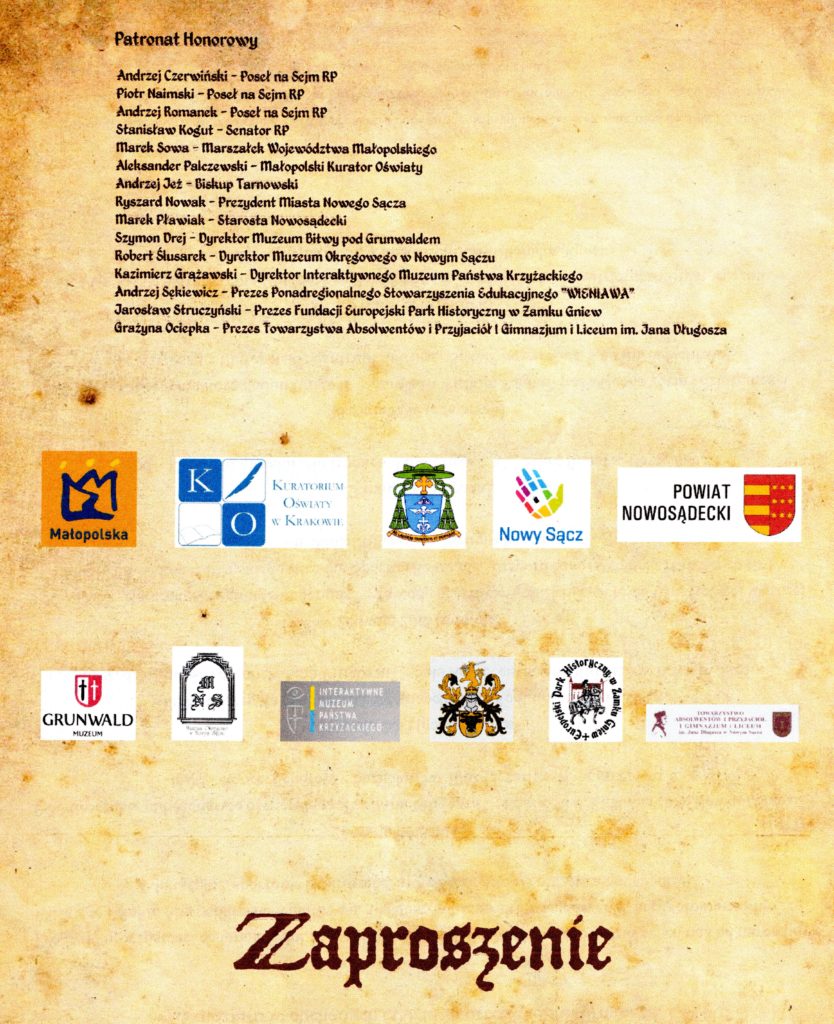 W Sali Reprezentacyjnej Ratusza w Nowym Sączu odbyła się uroczystość podsumowania finału Ogólnopolskiego Konkursu Historycznego „Życie, działalność i dorobek Jana Długosza” pod patronatem Joanny Kluzik – Rostkowskiej Minister Edukacji Narodowej. Do etapu centralnego zakwalifikowali się uczniowie 14 gimnazjów i 7 szkół ponadgimnazjalnych. Wcześniej w budynku I LO w Nowym Sączu uczestnicy finału zmierzyli się z 30 trudnymi zadaniami testowymi z zakresu historii XV wieku, na których rozwiązanie przeznaczono 60 minut.