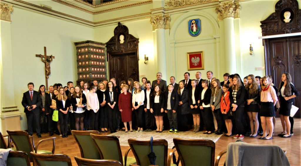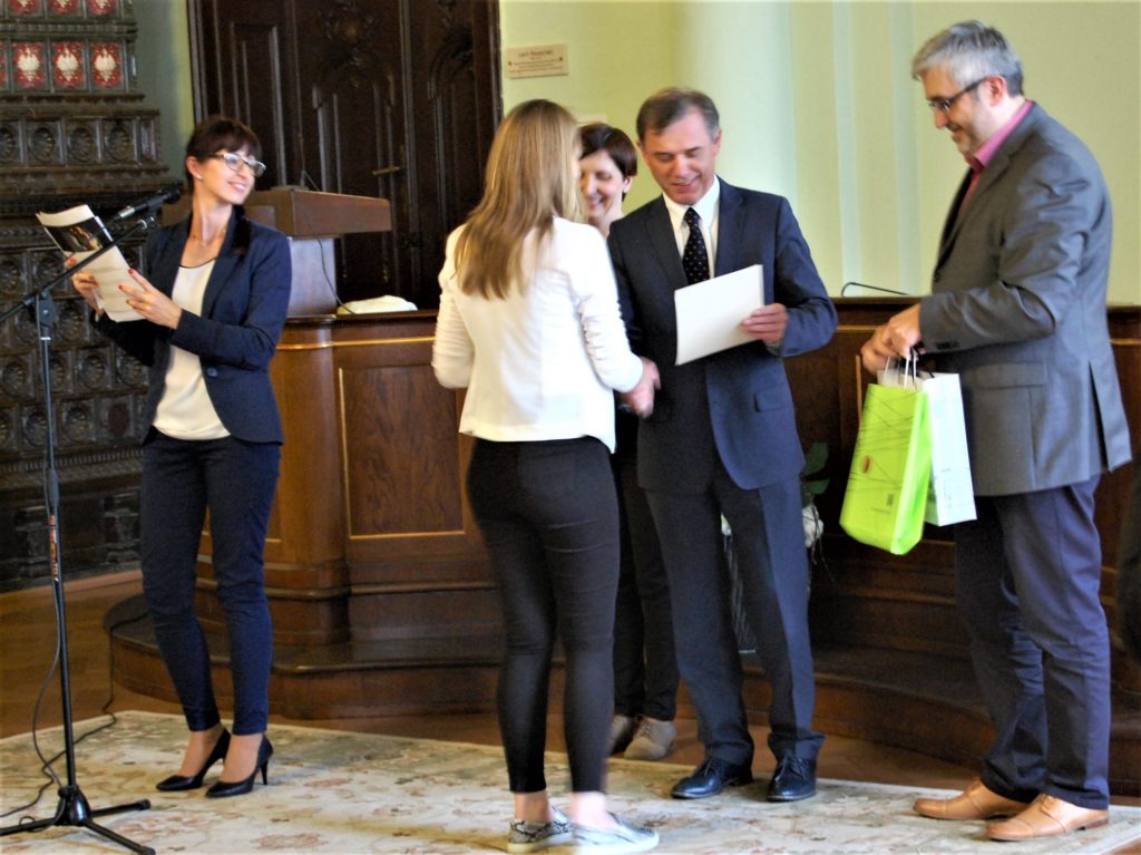 Nagrody rzeczowe wręczyli: poseł Andrzej Romanek, wicekurator Grzegorz Baran, dyrektor Delegatury Kuratorium Oświaty w Krakowie Stanisław Szudek, sekretarz miasta Marek Oleniacz, dyrektor Aleksander Rybski i nauczyciel historii Michał Zacłona.