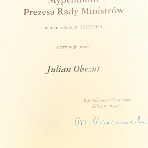 Dyplom stypendysty Prezesa Rady Ministrów otrzymał Julian Obrzut z klasy 2 G wraz z życzeniami dalszego rozwoju i sukcesów od dr Gabrieli […]