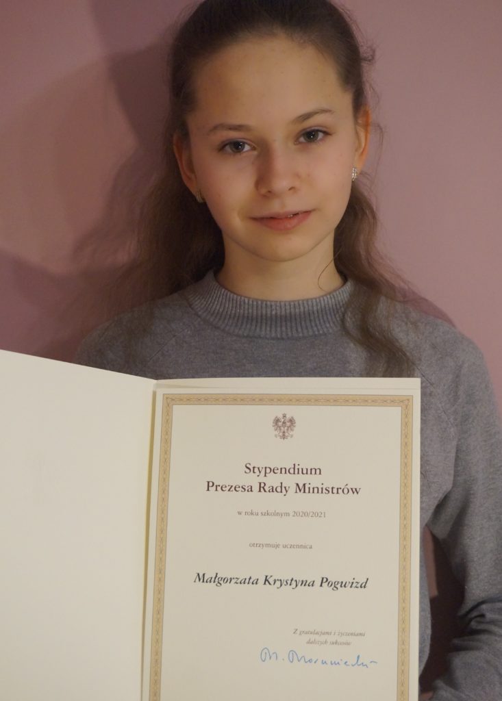 Bardzo miło jest nam poinformować, że dwie uczennice naszej szkoły- Maria Szwarkowska z klasy 3d oraz Małgorzata Pogwizd z klasy 2a otrzymały stypendium Prezesa Rady Ministrów za uzyskanie najwyższych wyników w nauce w roku szkolnym 2019/2020.