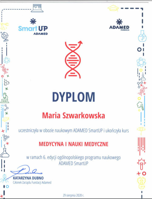 Maria Szwarkowska – uczestniczką programu naukowo-edukacyjnego ADAMED SmartUP !