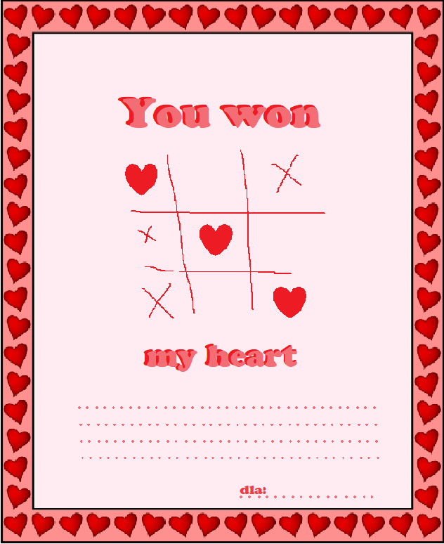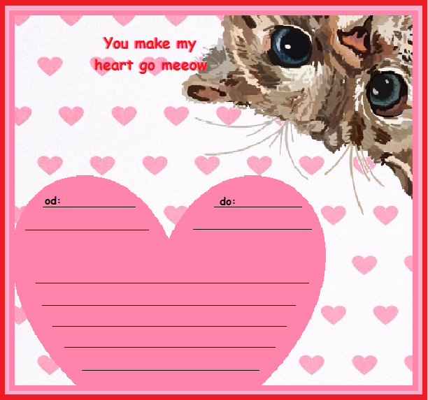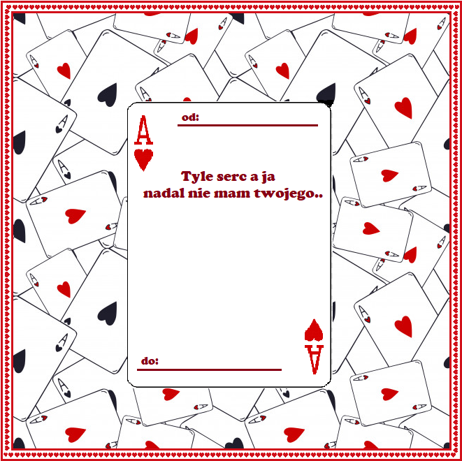 Poniżej znajdziecie kilka gotowych wzorów kartek walentynkowych do pobrania. Jest również opcja stworzenia własnej.