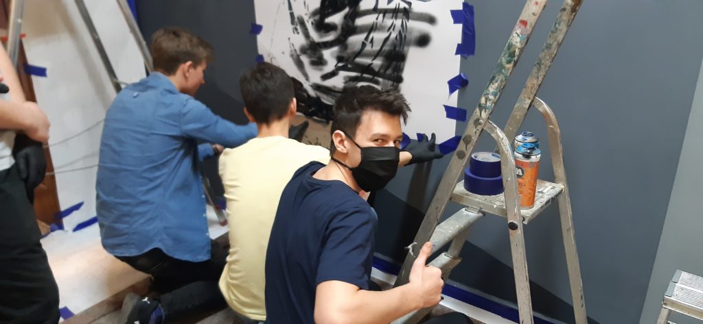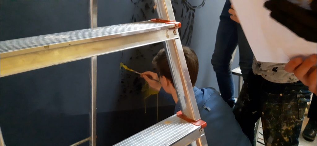 Malowanie na ścianie pod okiem Mgr. Morsa trwało prawie 8 godzin. Było to dla uczniów ciekawe doświadczenie nie tylko artystyczne. Swoim zaangażowaniem udowodnili, że są przekonani o słuszności takich działań.