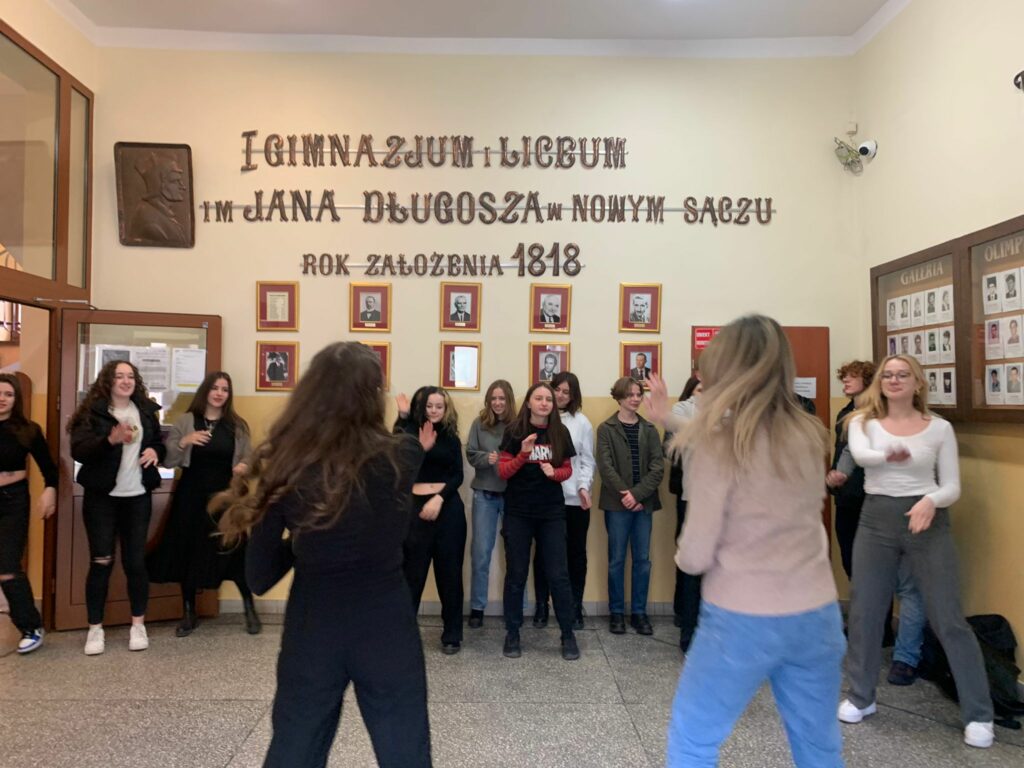 I LO aby upamiętnić ten dzień zorganizowało taneczny flashmob . 6 kwietnia o godzinie 12:20 w całej szkole rozbrzmiała muzyka „Magic In The Air”, utwór znany z Euro 2016r. Niezwykle energetyczna muzyka porwała wszystkich uczniów do tańca. Choreografię ułożyła mgr Anita Migacz. Uczniowie tańczyli i śpiewali na sali gimnastycznej i wszystkich korytarzach. Niezwykła integracyjna siła tańca pokazała jaką mamy wspaniałą młodzież. Przez sport do pokoju! To były niezwykłe minuty. Nasi uczniowie pokazali, że mimo pandemii mają w sobie ogromną energię i chęć do działania. Cały event przygotowali nauczyciele wychowania fizycznego. Pomysłodawcą była mgr Anita Migacz. W akcji bardzo chętnie uczestniczyli inni nauczyciele integrując się z młodzieżą. Uczniowie zorganizowali transmisję na żywo na Instagramie, a w przygotowaniu jest film. Była to pierwsza taka akcja w Długoszu, ale na pewno nie ostatnia.