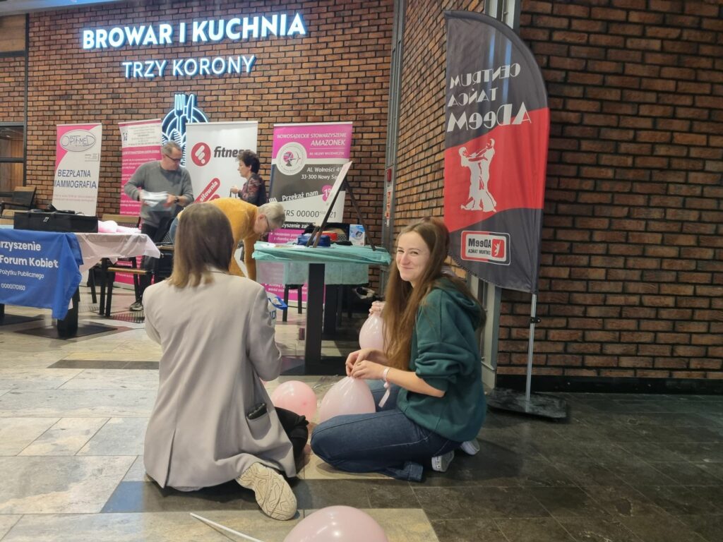 Szkolny Klub Wolontariatu uczestniczył w finałowej akcji tz w różowego października..29.10.22. w sobotę nasze wolontariuszki Beata, Kamila i Karolina z 3e i Julia z 3g pod opieką pani mgr Anity Migacz pomagały przeprowadzić II Festwal Zdrowia organizowany przez Stowarzyszenie Europa Donna w Nowym Sączu. W Trzech Koronach od 11.00 do15.00 dziewczęta pomagały w przygotowaniu stanowisk min. do pomiaru ciśnienia krwi czy miejsca do nauki samobadania piersi. Informowały ludzi o możliwości zapisów na badania profilaktyczne i zachęcały do aktywności fizycznej. Akcja cieszyła się dużym zainteresowaniem, a nasze wolontariuszki zdobyły nowe doświadczenia i wiedzę dotyczącą naszego zdrowia. Europa Donna bardzo dziękuje za okazaną pomoc.