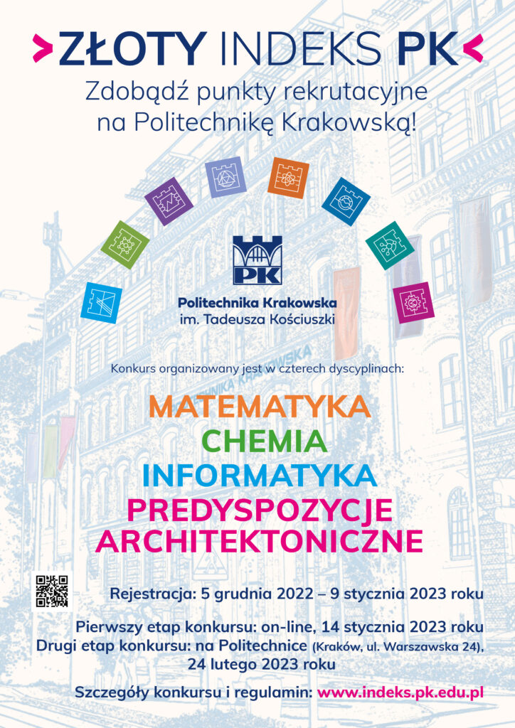 Politechnika Krakowska im. Tadeusza Kościuszki zaprasza uczniów klas maturalnych do udziału w VIII edycji ogólnopolskiego konkursu „O Złoty Indeks PK”.