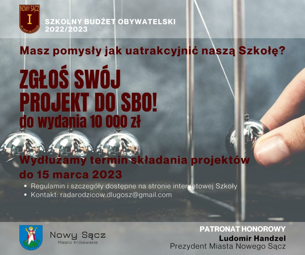 Informujemy, że termin składania projektów do SBO 2023 zostaje przedłużony do 15 marca.