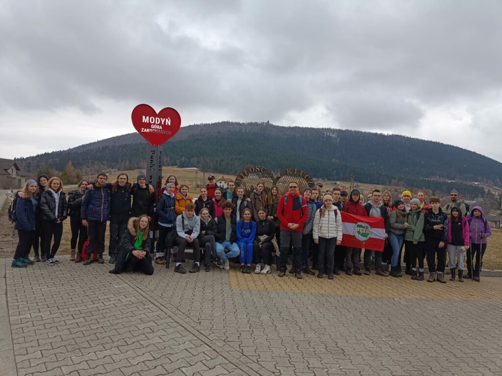 WWW czyli Wielka Wyprawa Wiosenna odbyła się 21 marca 2023 r. Maszerowaliśmy Głównym Szlakiem Beskidu Wyspowego, odwiedzając kolejne szczyty zaliczane do Korony tego pasma górskiego. Punktem docelowym wyprawy była Góra Zakochanych – Modyń 1029 m n.p.m. i wieża widokowa.