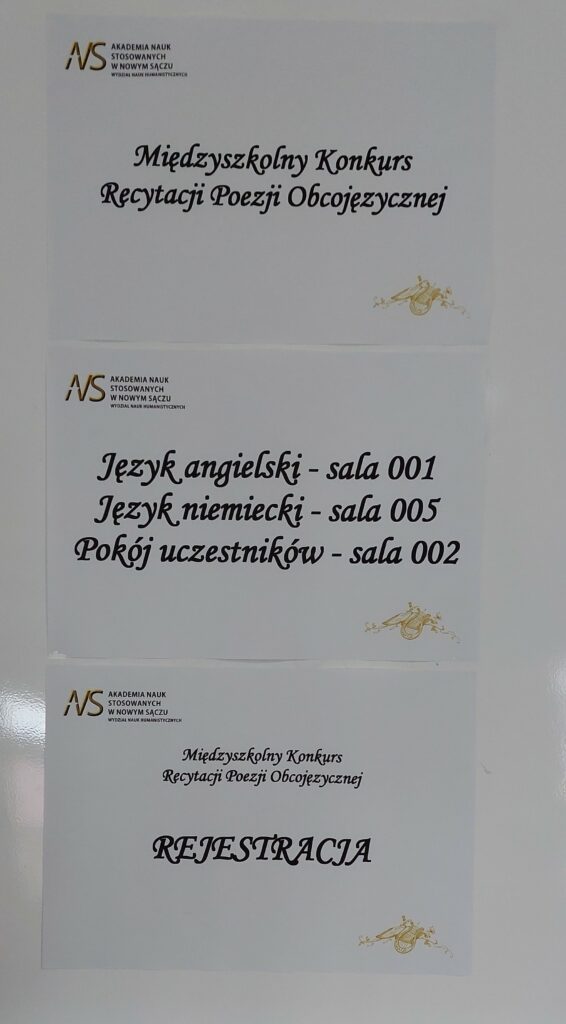 W dniu 13 kwietnia 2023 roku uczennice klasy 3c:  Sara Sobczak, Joanna Załubska oraz Gabriela Orzeł wzięły udział w Międzyszkolnym Konkursie Recytacji Poezji Obcojęzycznej organizowanym przez Akademię Nauk Stosowanych w Nowym Sączu.