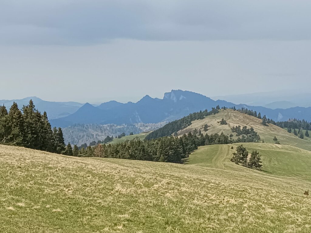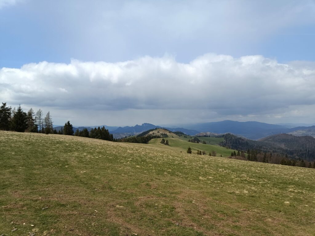Później wędrowaliśmy grzbietem Małych Pienin na szczyt Wysokiego Wierchu skąd roztacza się rozległa panorama w stronę Słowacji 🇸🇰, Tatr 🏔 oraz Beskidów.