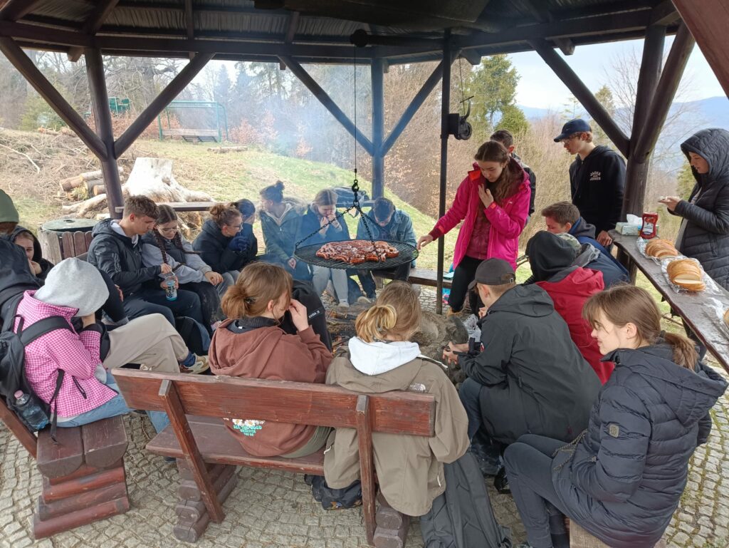 Później udaliśmy się do schroniska pod Durbaszką, gdzie tradycyjnie przy ognisku 🔥 delektowaliśmy się kiełbaską 😋.