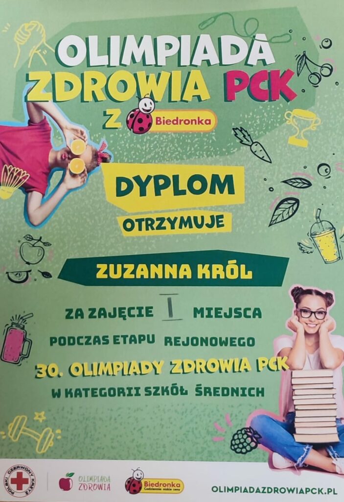 Kolejny etap olimpiady odbył się w dniu 24 kwietnia, spośród 8 finalistów etapu rejonowego uczennica Zuzanna Król z klasy 1B zajęła I miejsce !!!
