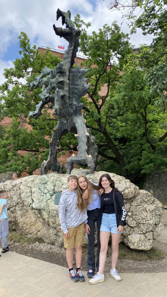 Jesteśmy w trakcie rewizyty uczennic z Francji: Mathilde i Constance. Ich korespondentki, Wiktoria Gasparska z kl. 1g i Amelia Blach z kl. 2h, próbują przybliżyć im polską kulturę i zwyczaje oraz pokazać najpiękniejsze miejsca naszej okolicy tj. Kraków, Piwniczną, Krynicę, Rytro, Pieniny – Trzy Korony oraz Wieliczkę.