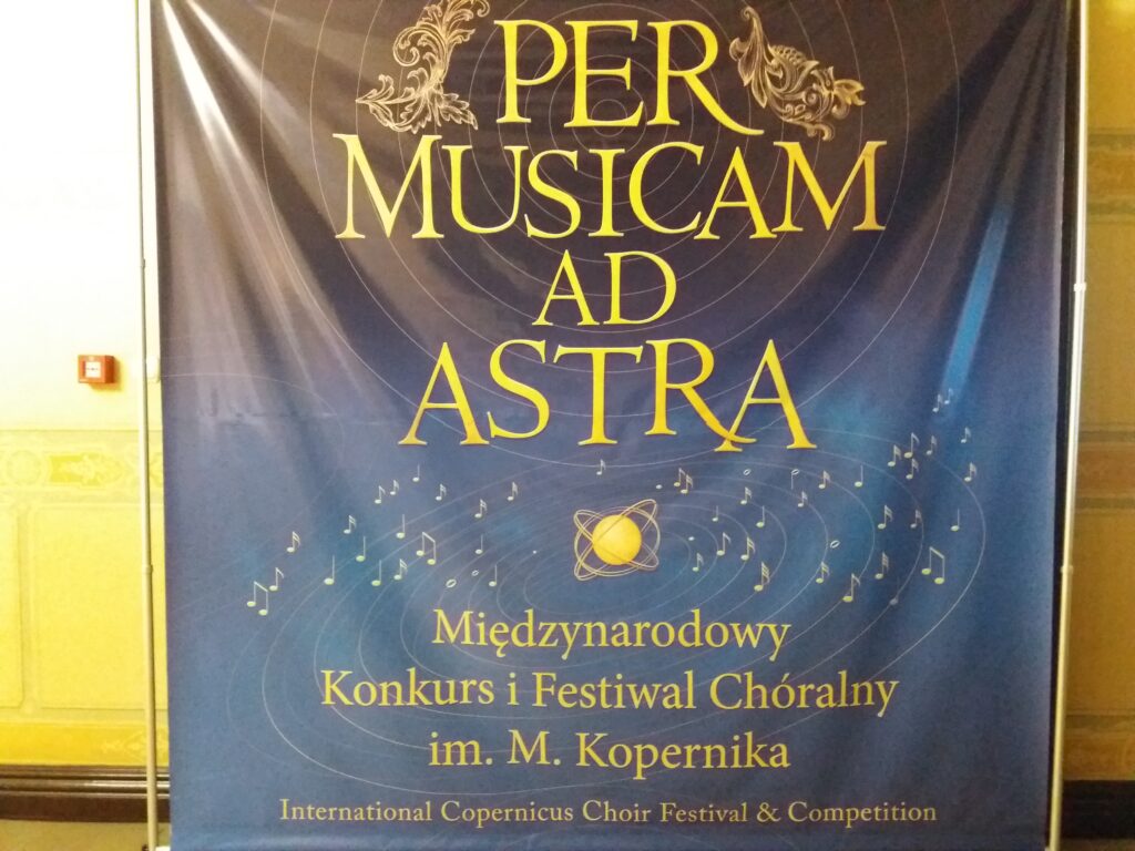 W dniach 28-30 czerwca Młodzieżowy Chór „Scherzo” I LO w Nowy, Sączu pod dyrekcja dra Andrzeja Citaka uczestniczył w X Międzynarodowym Konkursie i Festiwalu Chóralnym ‘Per Musica ad Astra’ im. Mikołaja Kopernika w Toruniu. Wyjazd został dofinansowany ze środków Urzędu Miasta, Starostwa Powiatowego o raz Województwa Małopolskiego. W tym wydarzeniu wzięło udział 13 zespołów z Polski, Czech, Litwy i Izraela. Zespół wystąpił w kategoriach muzyki świeckiej i sakralnej w kameralnym składzie 19-osobowym. Występy konkursowe odbyły się w piątek, 30 czerwca. Chór zaśpiewał po 4 utwory w każdej kategorii. Utwory świeckie to: „Il bianco e dolce cigno”, „Znasz-li ten kraj”, „A jingele, a mejdele” i „Zaczarowany ołówek”, a utwory religijne to: „Adoramus te Christe”, „Exultate Deo”, „Deep River” oraz „Ave Regina Caelorum”. Dzień wcześniej chór wystąpił również w koncercie festiwalowym, prezentując 10 utworów ze swojego repertuaru, które zostały owacyjnie przyjęte przez publiczność. Udział w konkursie zaowocował podwójnym sukcesem – sądecki chór zdobył dwa złote dyplomy. W kategorii chórów młodzieżowych uzyskał drugą punktacją po chórze Medvíďata z Czeskiego Krumlowa, a w kategorii ‘Musica Sacra’ trzecią punktację m.in. po chórze Akademickim Uniwersytetu Warszawskiego. Wygrana w Toruniu to pierwszy, po okresie pandemii, sukces Sądeczan w zupełnie nowym składzie. Niestety zespół nie mógł uczestniczyć w ceremonii wręczenia nagród, ponieważ musiał wracać do Nowego Sącza na uroczystość w ramach „Imienin Miasta’.