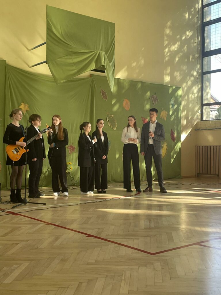 Dnia 13 października odbyła się akademia z okazji święta Komisji Edukacji Narodowej w obecności Dyrekcji, Grona Pedagogicznego, przedstawiciela Rady Rodziców, zaproszonych gości oraz młodzieży I LO. Po krótkich przemowach przedstawiciela Rady Rodziców Pana Jakuba Mółki, przewodniczącej Samorządu Uczniowskiego Natalii Szczepaniak, Dyrektora Pana Jacka Tomasika, nastąpiło uroczyste wręczenie nagród wyróżnionym nauczycielom, pracownikom szkoły i wychowawcom internatu. Na zakończenie spotkania młodzież naszego Liceum zaśpiewała piosenkę pt. „Bez słów” dedykowaną wszystkim obecnym na uroczystości gościom. Za przygotowanie akademii odpowiedzialna była Pani mgr Zuzanna Bocheńska wraz z uczniami z klas: 1a, 2a, 2e i 3a. Szczególne podziękowania za przygotowanie dekoracji należy skierować w stronę Pani mgr Katarzyny Lebdowicz, Samorządu Szkolnego i jego opiekunek Pani mgr Sylwii Wojtas i Pani mgr Ewy Suwały za wszelaką pomoc i cenne wskazówki oraz Pana mgr Tomasza Kotlarza za pomoc w obsłudze sprzętu technicznego.