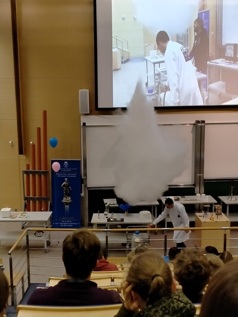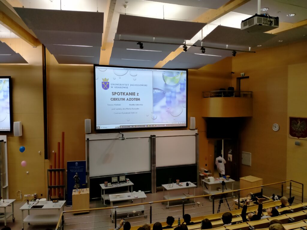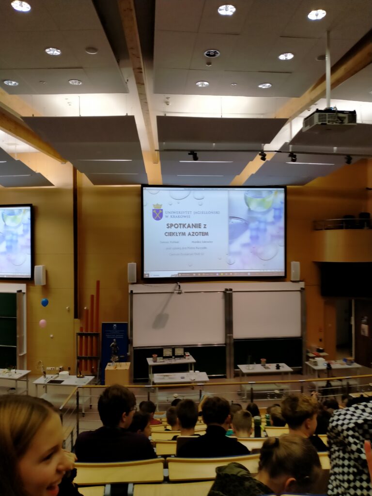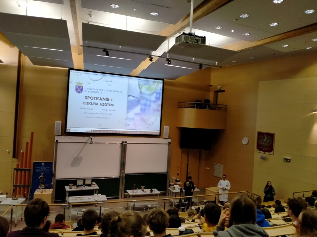 27 października 2023 roku uczniowie I LO wzięli udział w wykładach organizowanych przez Wydział Fizyki, Astronomii i Informatyki Stosowanej Uniwersytetu Jagiellońskiego w Krakowie. Pierwszy z cyklu wykładów był zatytułowany „Spotkanie z ciekłym azotem”.