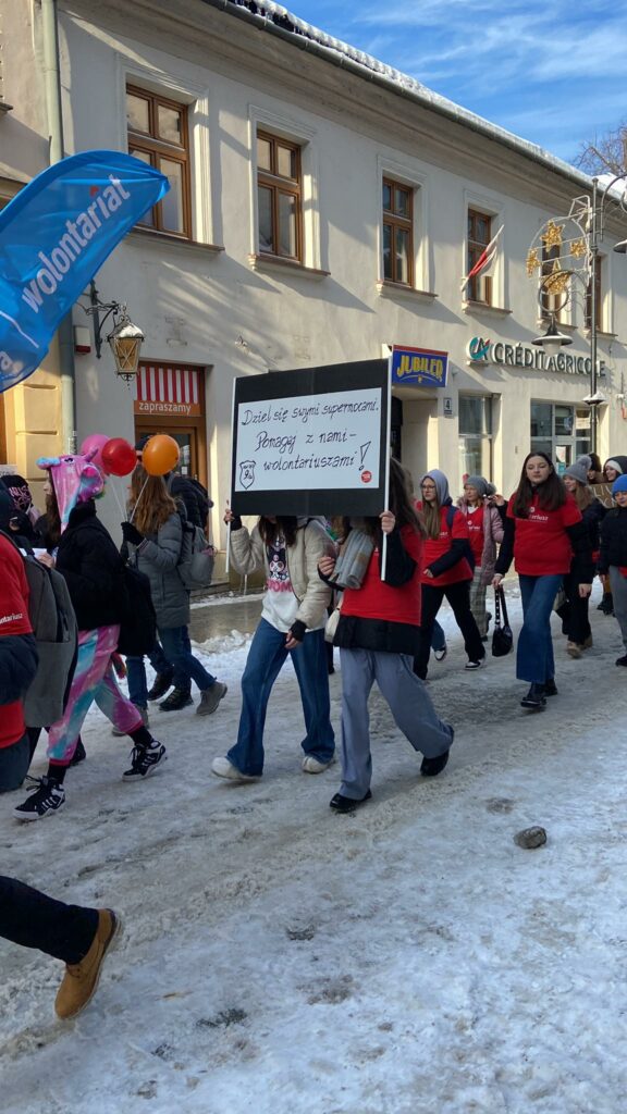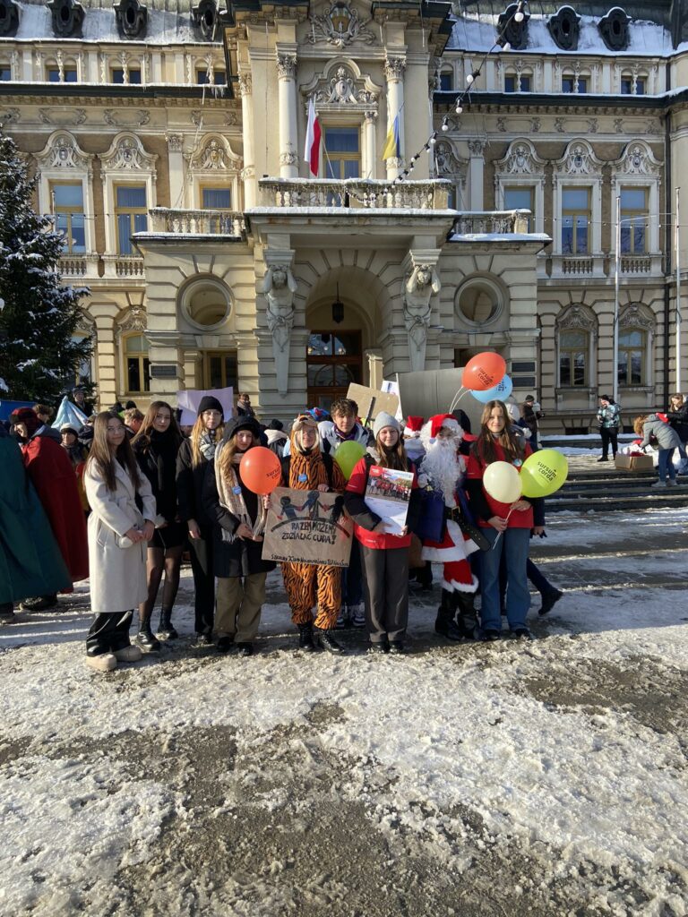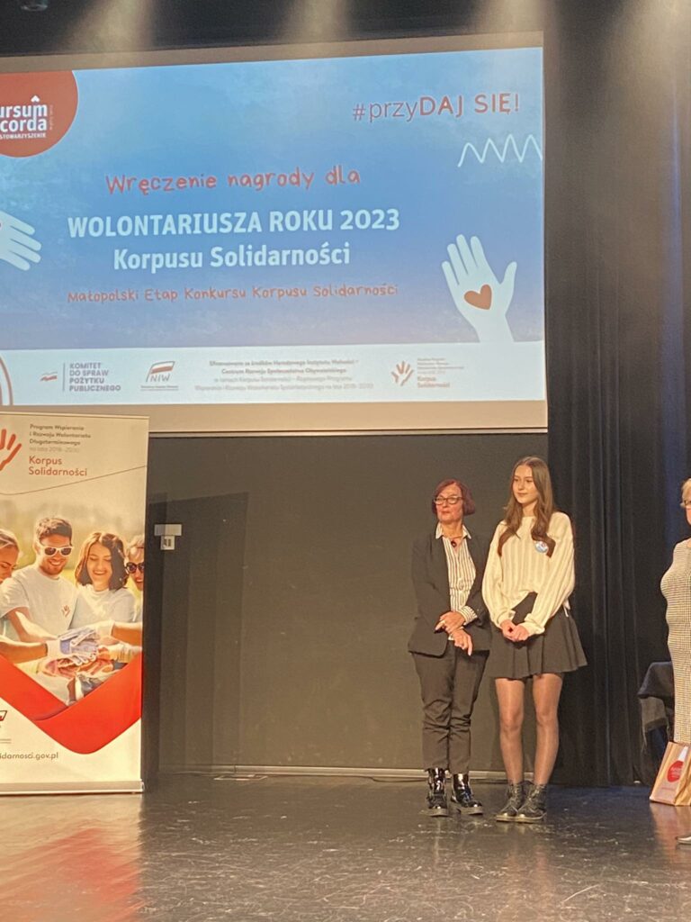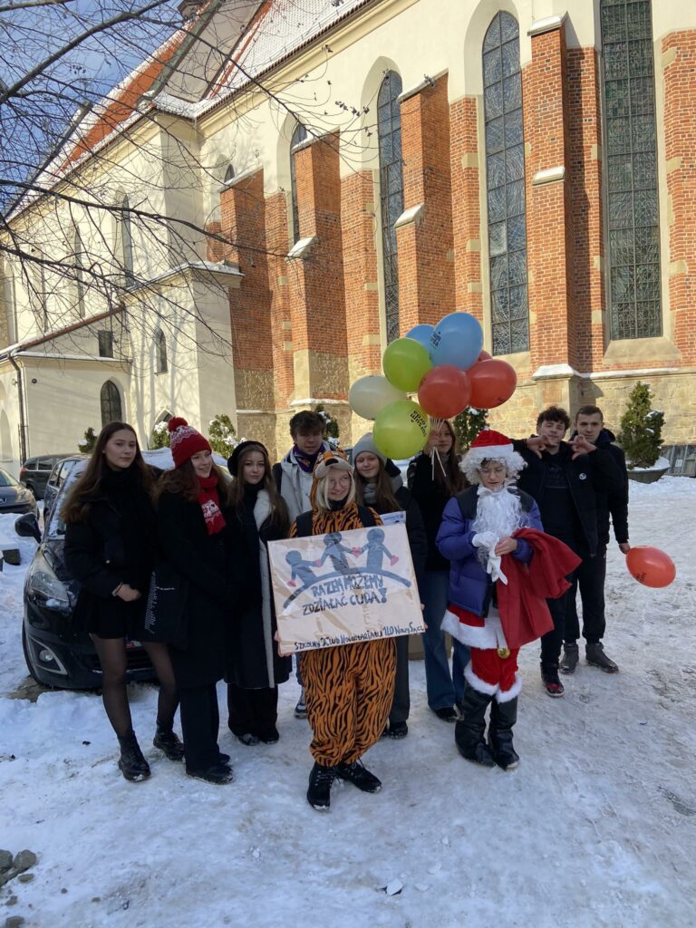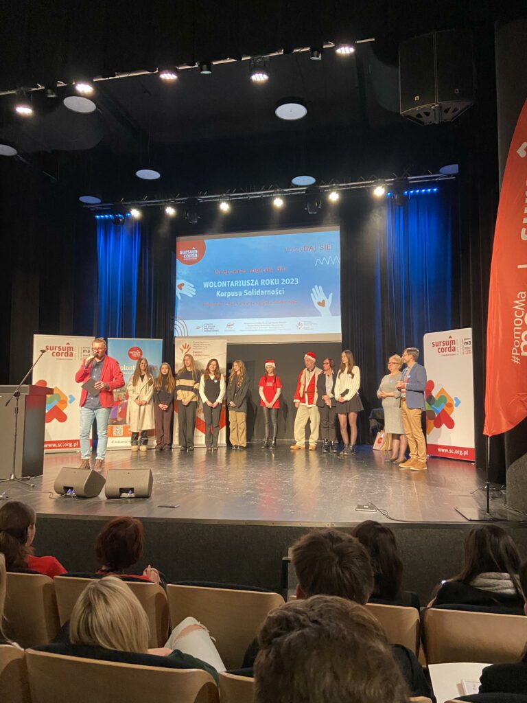 5 grudnia to Międzynarodowy Dzień Wolontariusza. I LO to szkoła, która bardzo prężnie działa w dziedzinie wolontariatu. Z radością informujemy, że w plebiscycie Korpusu Solidarności 6 naszych uczennic: Brygida, Klaudia, Marlena, Anna, Ola, Julia otrzymało wyróżnienie w konkursie na Wolontariusza Roku, a pani Anita Migacz na Koordynatora Roku 2023. Gratulujemy. Obchody zostały zorganizowane przez stowarzyszenie Sursum Corda. Były wspólne tańce na płycie Rynku, kolorowy pochód i Gala Konkursu w Auli ANS w Nowym Sączu. Pani Maria Stefańska z grupą młodych wolontariuszy kibicowała nominowanym wolontariuszkom. W tym czasie w szkole pod opieką pani Anny Pawłowskiej -Cieśli wolontariusze zorganizowali happening promując ideę wolontariatu. Pamiętajcie, że „ wolontariat to dobro, które wraca !