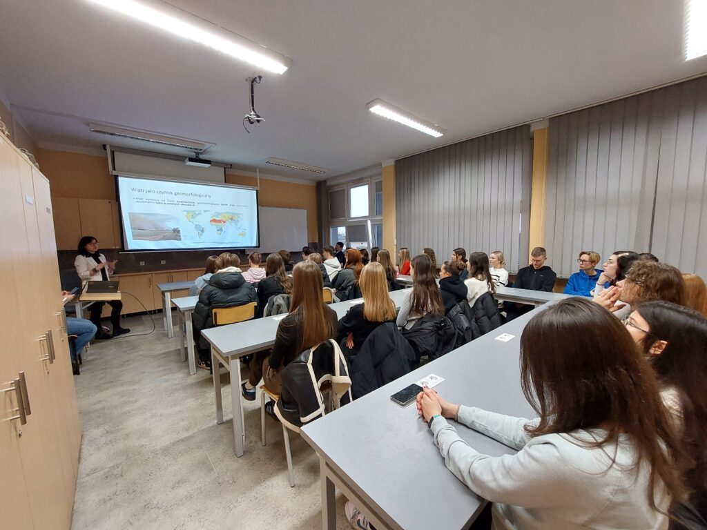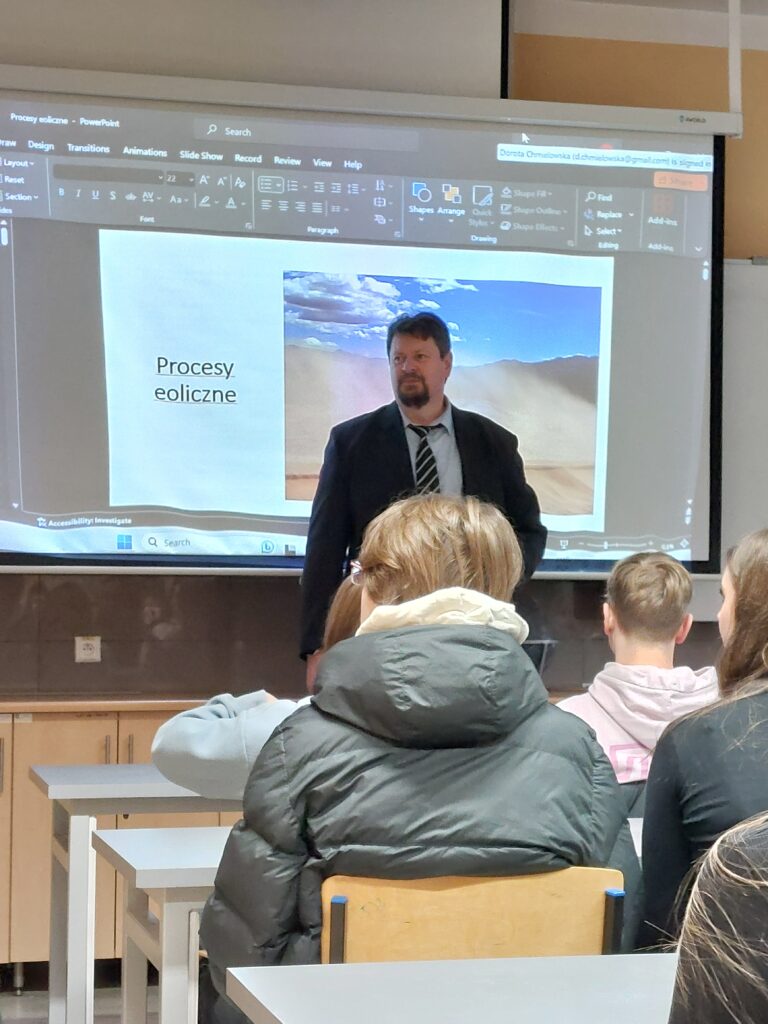 31 stycznia 2024 roku członkowie GKN-u uczestniczyli w zajęciach naukowych z geografii na temat działalności eolicznej na świecie oraz rzeźbotwórczej działalności rzek . Spotkanie poprowadzili pracownicy naukowi Instytutu Biologii i Nauk o Ziemi UKEN w Krakowie: