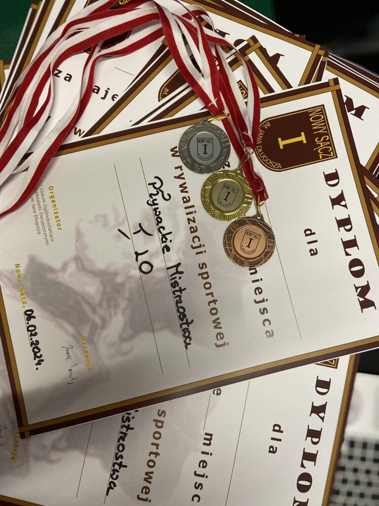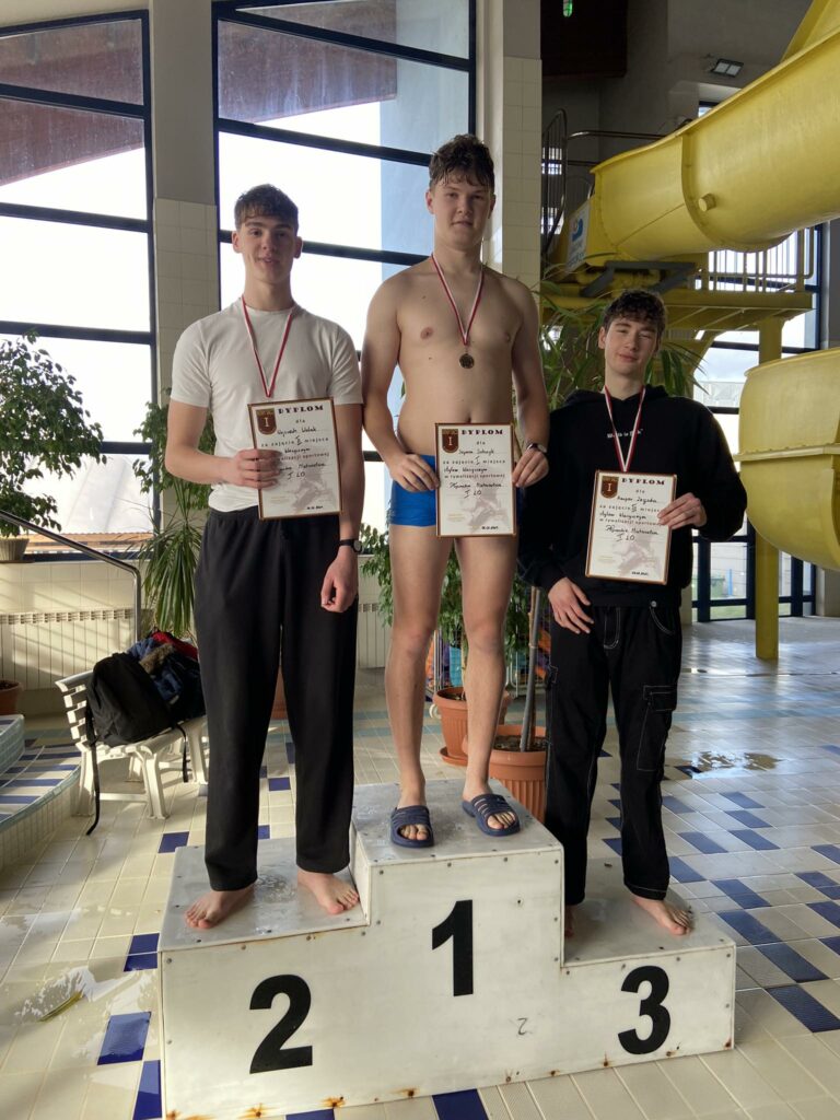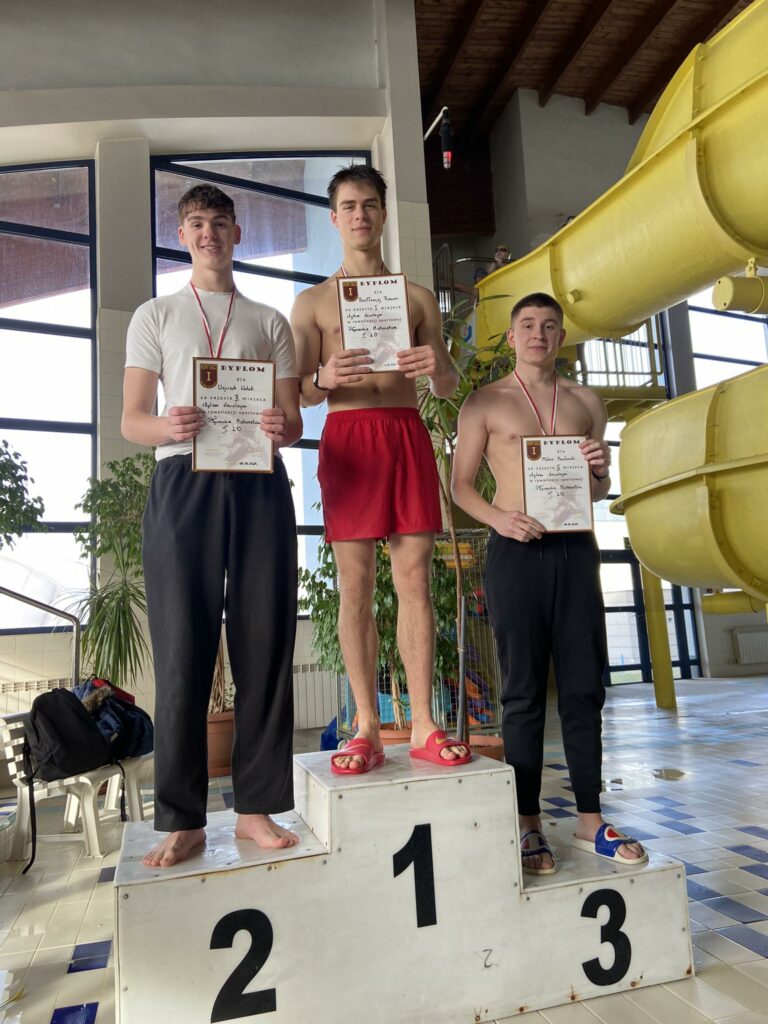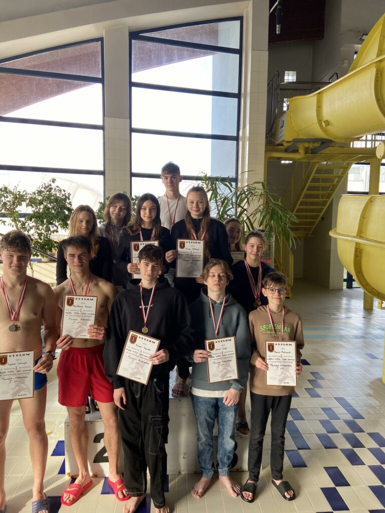 06.02.2024 r. odbyły się Mistrzostwa I LO . Zawodniczki i zawodnicy startowali w 4 konkurencjach na dystansie 50 m oraz w sztafecie 4 × 25 m stylem zmiennym. W st.dowolnym wśród dziewcząt medale wywalczyły : 1 miejsce Kurzeja Karolina, 2 mc. Szczepańska Paula, 3 mc. Sadecka Zosia . Wśród chłopców 1 mc. Roman Bartłomiej, 2 mc. Wolak Wojciech, 3 mc. Pawłowski Miłosz.