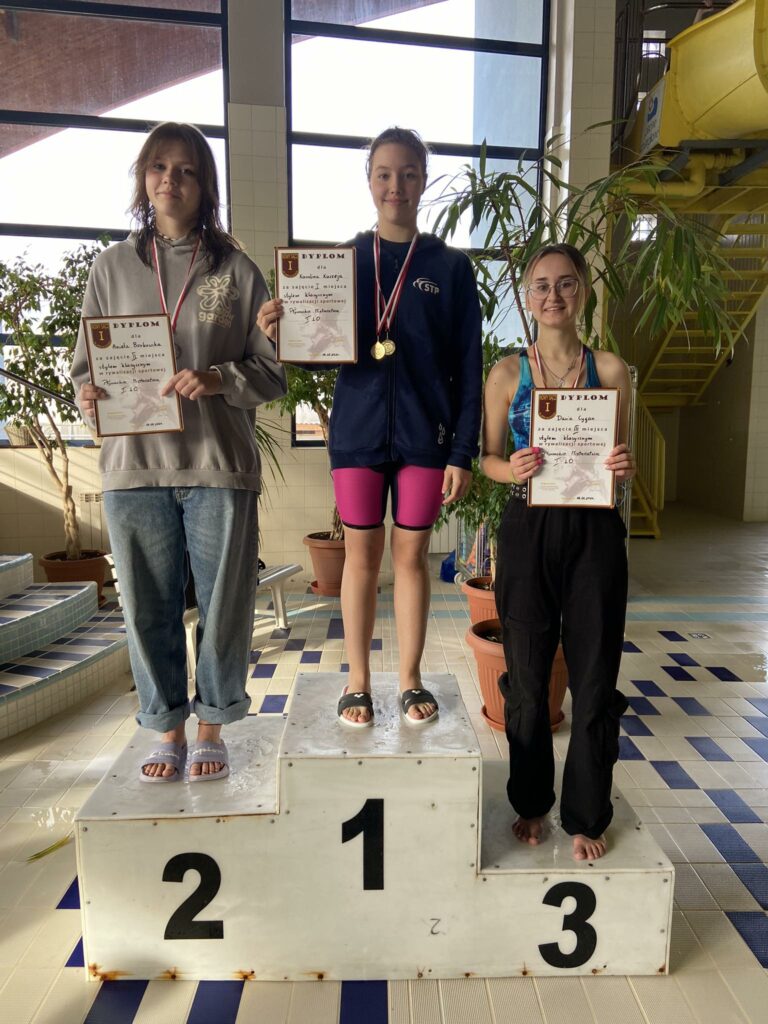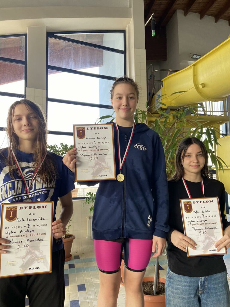 Styl klasyczny medale dla dziewczyn przypadły : 1 mc. Kurzeja Karolina, 2 mc . Borkowska Aniela, 3 mc. Cygan Daria. Wśród chłopców 1 mc. Sobczyk Szymon, 2 mc. Wolak Wojciech, 3 mc. Zegzda Kacper. W stylu motylkowym wśród dziewcząt 1mc. Kurzeja Karolina, 2mc. Miśtak Anna, 3 mc. Szczepańska Paula. Styl grzbietowy dziewcząt: 1 mc. Kurzeja Karolina, 2 mc Miśtak Anna, 3 mc. Olchawa Nikola. W sztafecie 1 mc. zajęli: Olchawa Nikola , Sadecka Zosia , Wolak Wojtek i Zegzda Kacper. 2 mc. Gumulak Lena , Borkowska Aniela , Roman Bartłomiej i Sobczyk Szymon. 3 mc. Kurzeja Karolina , Kundziarz Anna , Malinowski Marcin, Święs Jakub. W zawodach wzięło udział 22 zawodniczek i zawodników . Wszystkim , wygranym ale także uczestnikom serdecznie gratulujemy . Dziękujemy za wspaniałą sportową postawę oraz udział. Podziękowania także dla Pani Sędzi mgr. Agnieszki Kurzeji . Organizatorzy: mgr Anita Migacz , mgr Tomasz Jurkowski. Do zobaczenia za rok.