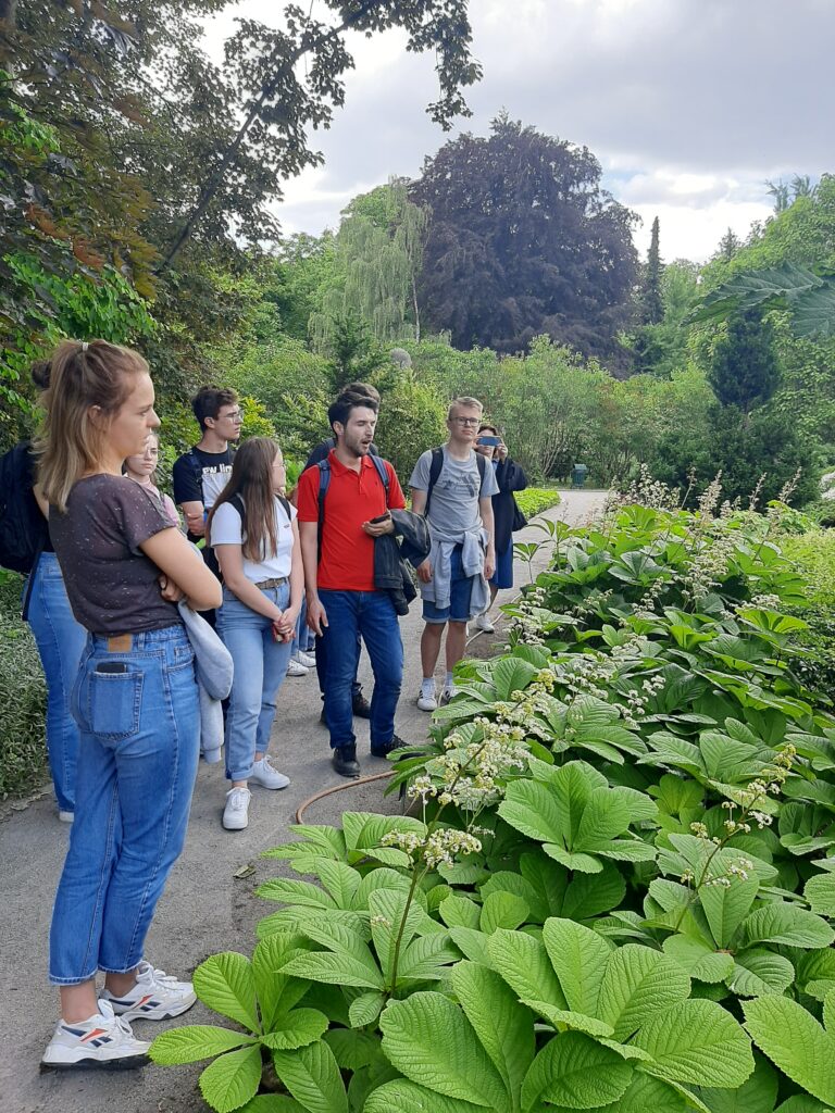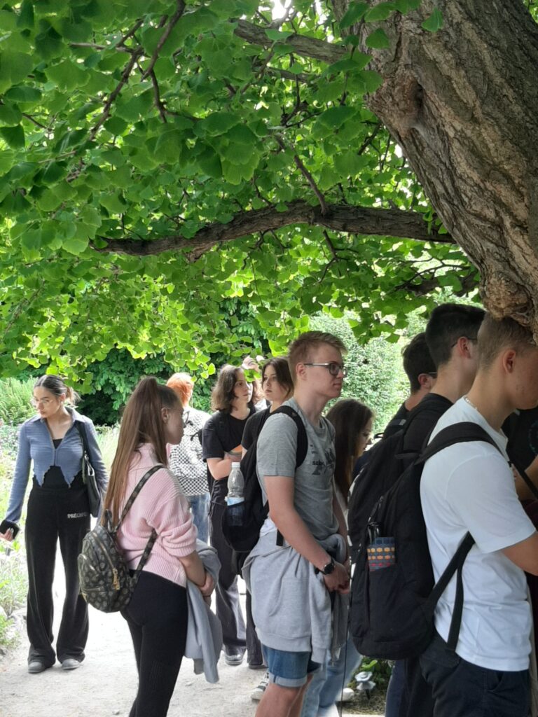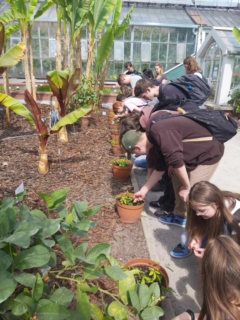 Drugim punktem była wędrówka z przewodnikiem po ścieżkach ogrodu, gdzie uczniowie mogli obserwować wiele ciekawych gatunków pochodzących z różnych stref klimatycznych , gatunki endemiczne i reliktowe. Zapoznali się z ich przystosowaniami w budowie morfologicznej i anatomicznej oraz systematyką.