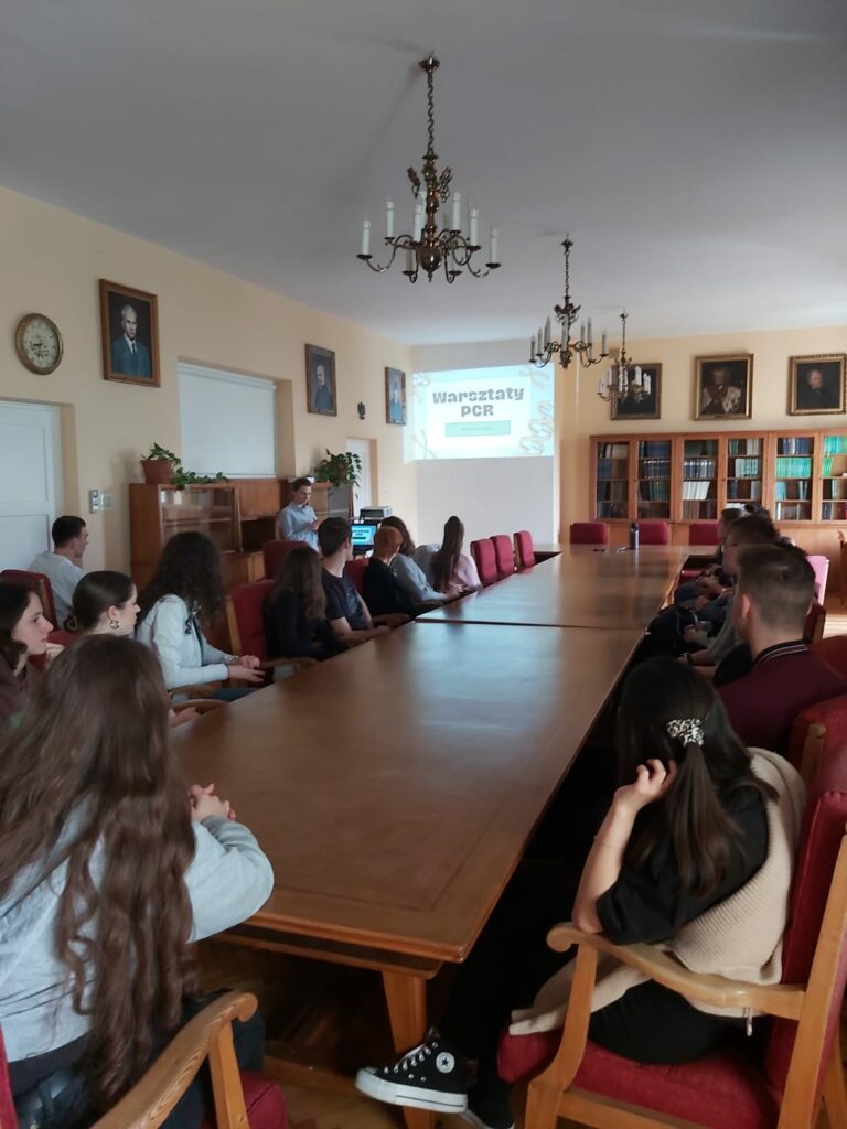 1. W Instytucie Botaniki im. W. Szafera Polskiej Akademii Nauk uczniowie wysłuchali wykładu na temat ‘’ Reakcja łańcuchowa polimerazy, PCR (od ang. polymerase chain reaction) – metoda powielania łańcuchów DNA i jej zastosowanie w badaniach genetycznych, diagnostyce wirusów i bakterii, w medycynie, rolnictwie i biotechnologii”