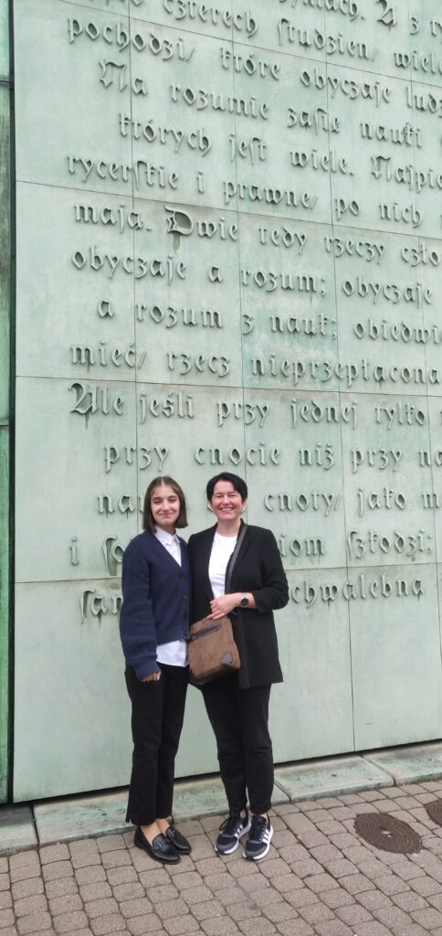 Nasz wyjazd do Warszawy stał się także okazją do spotkania z pięknymi miejscami stolicy, jak również z absolwentami I LO im. J. Długosza, obecnie studentami prawa i resocjalizacji warszawskich uczelni (UW i inne), oraz z pracownikami ważnych instytucji badawczych, niegdyś uczniami klasy ,,h” o profilu j.polski, historia, wos. Jedną z absolwentek jest Monika Stachoń (na zdjęciu poniżej), dziś specjalistka od cyberbezpieczeństwa, niegdyś finalistka LXV Olimpiady Polonistycznej drugim Jakub Walawski, zwycięzca 52. Olimpiady Wiedzy o Polsce i świecie Współczesnym, teraz pracownik dużej międzynarodowej kancelarii prawniczej. Tak oto ,,Jedynka” kształci i łączy olimpijczyków!