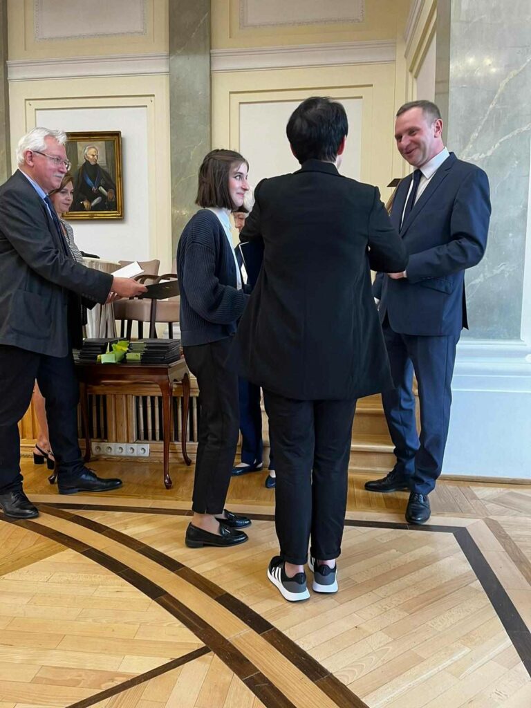 3 czerwca 2024 roku w Pałacu Staszica – siedzibie Instytutu Badań Literackich Polskiej Akademii Nauk w Warszawie – miało miejsce uroczyste zakończenie LIV Olimpiady Literatury i Języka Polskiego, w którym uczestniczyła Emilia Majerczak, uczennica klasy 3h, laureatka tegorocznej olimpiady. Odebrała ona dyplom oraz gratulacje od członków prezydium Komitetu Głównego OLiJP: prof. dr hab. Teresy Kostkiewiczowej – honorowej przewodniczącej, prof. dr. hab. Tomasza Chachulskiego – przewodniczącego oraz prof. dr hab. Teresy Dobrzyńskiej-Janusz – wiceprzewodniczącej. Ponadto Emilię wyróżniono jeszcze dodatkowo za wybór tematu pracy z zakresu XIX w. na etapie szkolnym i okręgowym. Laureaci zostali także obdarowani licznymi pozycjami książkowymi, podobnie jak ich opiekunowie oraz miesięcznym dostępem do wszystkich zasobów portalu Legimi (ebooki i audiobooki).