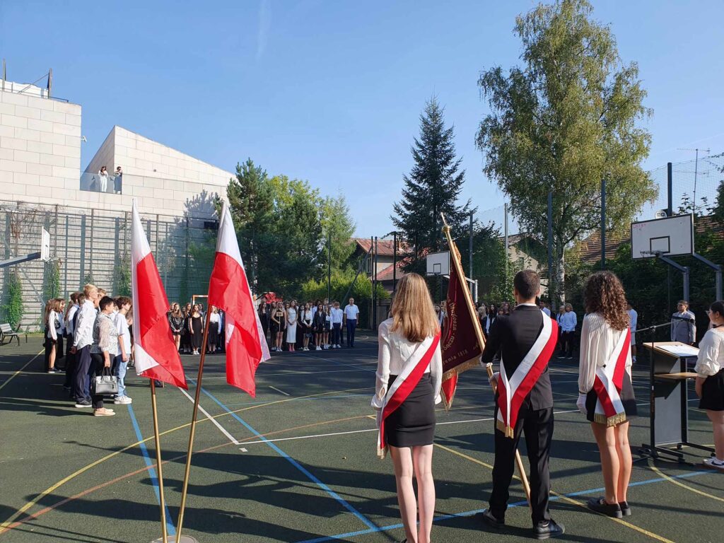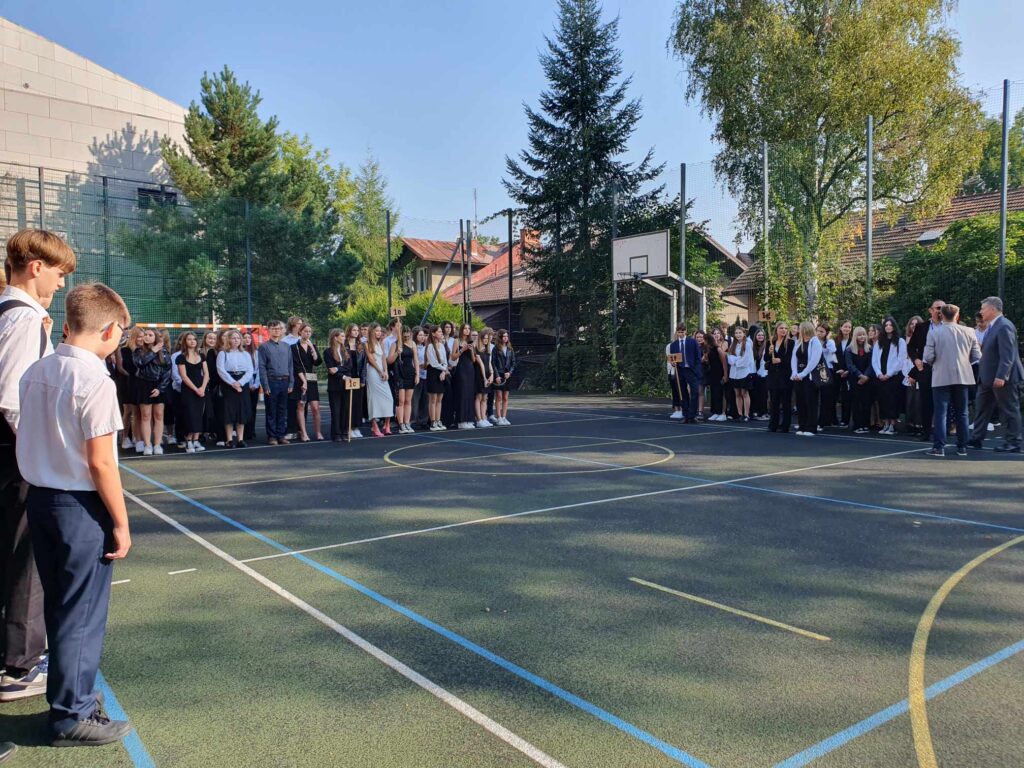 Inauguracja Nowego Roku Szkolnego 2 września 2024 roku to dla nas wszystkich szczególny dzień. Godzina 9:00 to był moment, w którym oficjalnie powitaliśmy kolejny rok szkolny. Uroczystość rozpoczęliśmy od wprowadzenia sztandaru szkoły i wspólnego odśpiewania hymnu państwowego. Jest to dla nas nie tylko forma szacunku dla naszej ojczyzny, ale także wyraz jedności i dumy z przynależności do tej wielkiej wspólnoty jaką jest nasza szkoła. Uroczystość poprowadziła Przewodnicząca Samorządu Uczniowskiego Natalia Szczepaniak. Pan Dyrektor mgr Jacek Tomasik serdecznie przywitał nauczycieli, uczniów klas I oraz życzył wytrwałości i motywacji na kolejny rok szkolny.