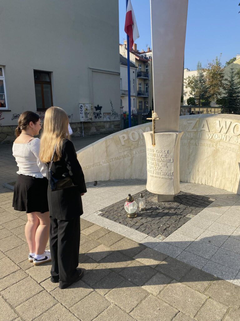 Po uroczystości przedstawiciele Samorządu Uczniowskiego zapalili znicz pod Pomnikiem Wolności upamiętniając 85 rocznicę wybuchu II Wojny Światowej.