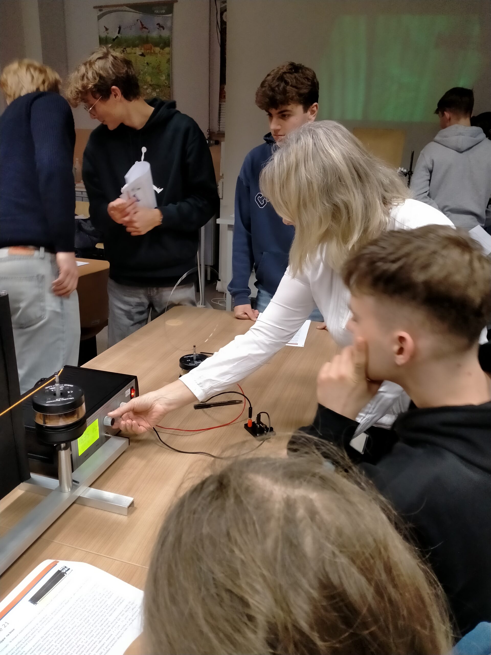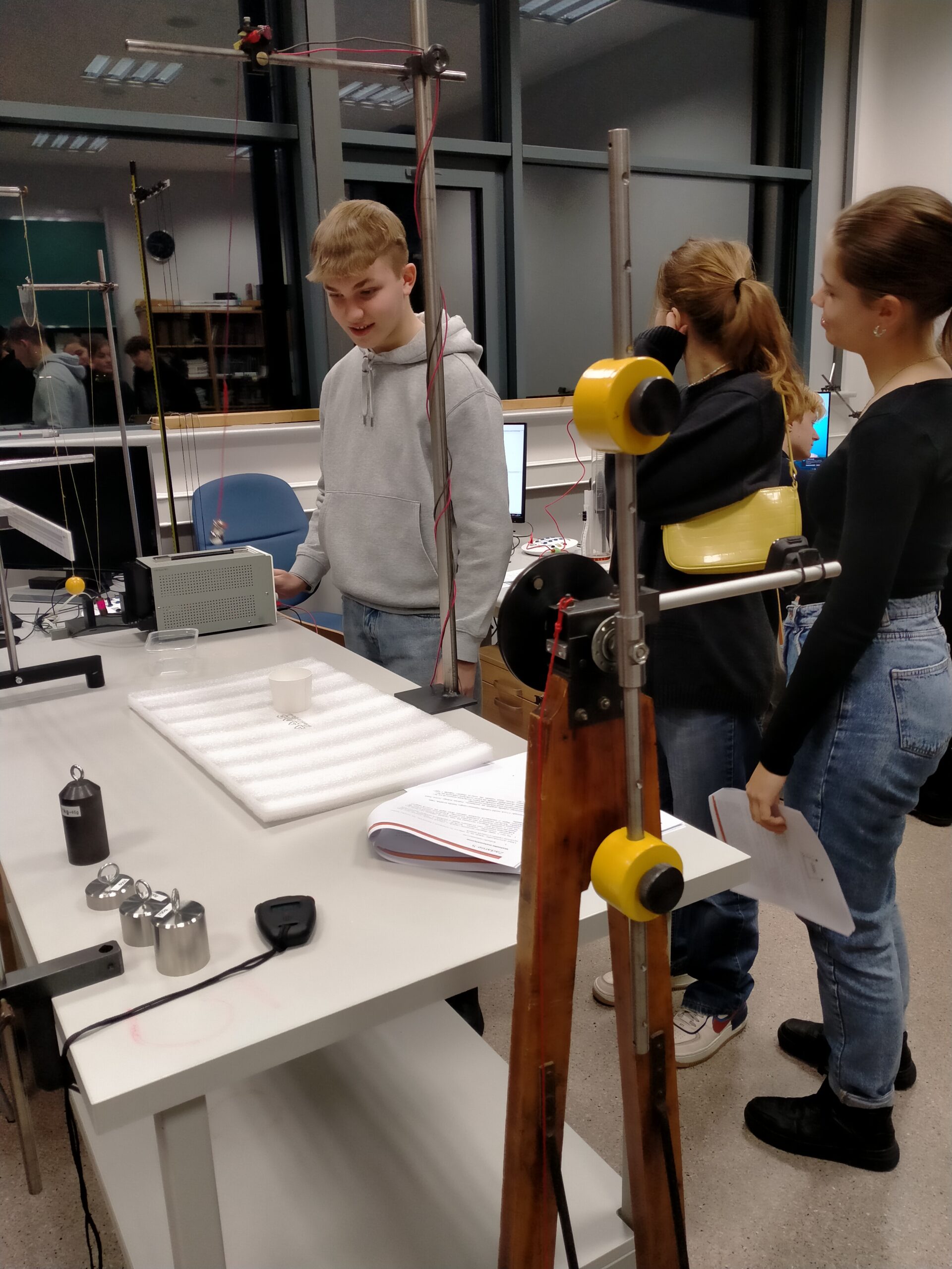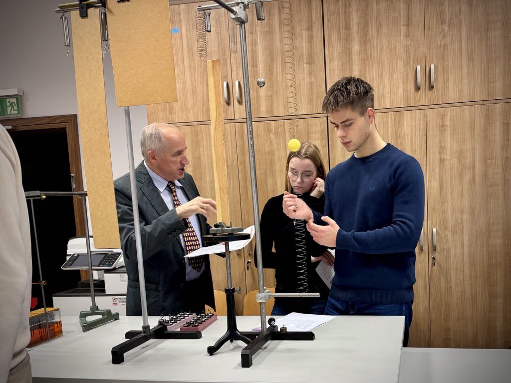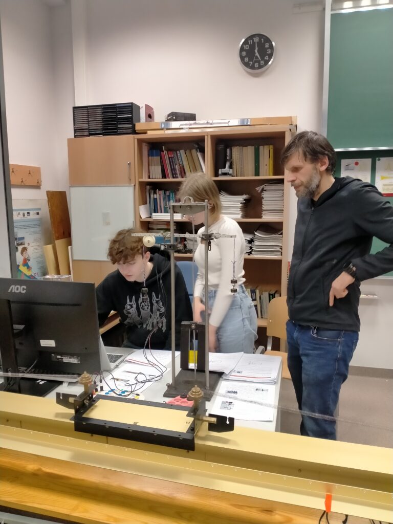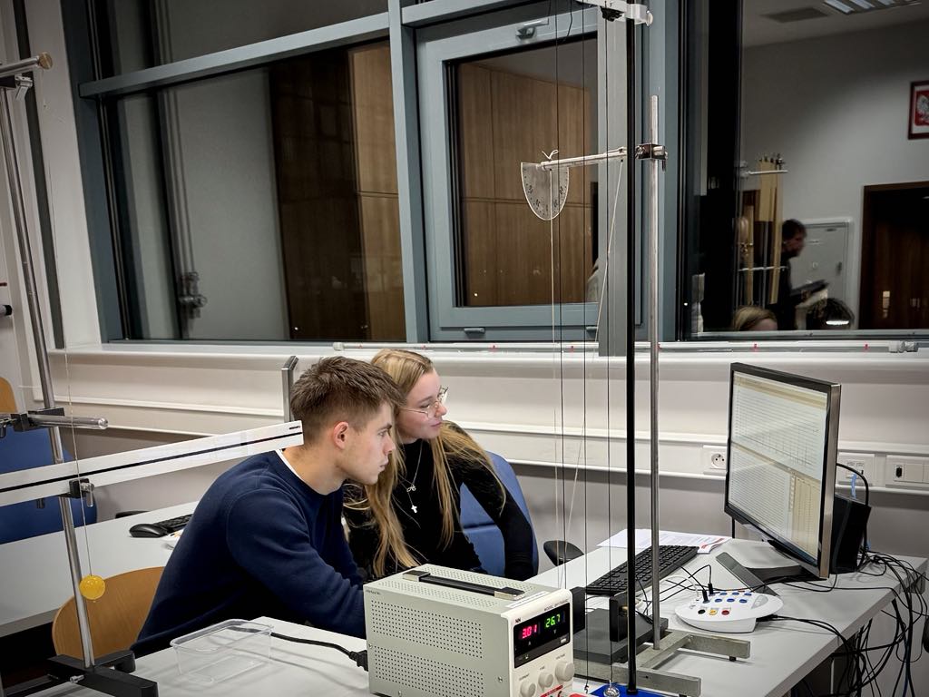 13 listopada 2024 r. uczniowie klas o profilu z rozszerzoną fizyką  mieli możliwość uczestniczyć w zajęciach organizowanych przez Wydział Fizyki, Astronomii i Informatyki Stosowanej Uniwersytetu Jagiellońskiego w Krakowie. Tym razem dr Piotr Kurzydło wraz ze współpracownikami i studentami przygotowali dla naszych uczniów zindywidualizowane warsztaty dotyczące tematyki „drgania i fale”. Każdy uczeń I LO biorący udział w zajęciach laboratoryjnych miał możliwość samodzielnego wykonania doświadczenia oraz indywidualnych konsultacji z parownikiem naukowym UJ.