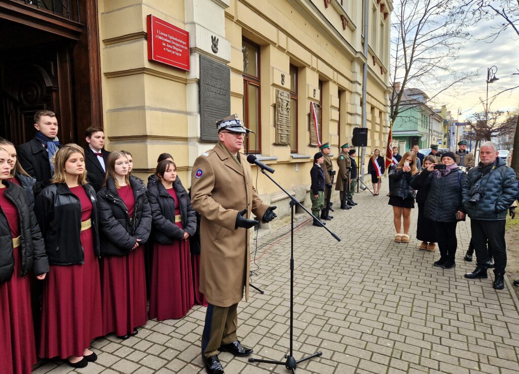 Dziękujemy Wszystkim, którzy przyczynili się do upamiętnienia generała dywizji Bolesława Wieniawy Długoszowskiego: przedstawicielom służb mundurowych, samorządu, instytucji kultury, instytucji oświatowych, harcerzom z „Czarnej Jedynki”, chórzystom „Scherzo”, mediom oraz nauczycielom i uczniom naszej szkoły. Słowa podziękowania dla Julii Pacholarz z klasy 4 H za wystąpienie publiczne w MCK „Sokół” – „Wczesne lata życia jako fundament osobowości i kariery”. Wpisu do Księgi Pamiątkowej Szkoły po uroczystościach w dniu 18 grudnia 2024 r. dokonali: Prezydent Miasta Nowego Sącza – Ludomir Handzel, Dyrektor Oddziału Instytutu Pamięci Narodowej w Krakowie – dr hab. Filip Musiał, Przedstawiciel 2 Korpusu Polskiego, Dowództwa Komponentu Lądowego, Zastępca Szefa Sztabu ds. Wsparcia, Garnizonu Kraków – generał brygady dr inż. Piotr Waniek, Profesor Zwyczajny – Włodzimierz Suleja, Honorowy Obywatel Miasta Nowego Sącza, Profesor Oświaty – Jerzy Giza.