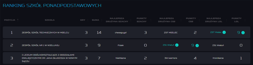 Z radością informujemy, że nasza szkoła – I Liceum Ogólnokształcące z Oddziałami Dwujęzycznymi im. Jana Długosza w Nowym Sączu – zajęła 3. miejsce w klasyfikacji generalnej szkół ponadpodstawowych w turnieju e-sportowym „Predator Games”! To ogromny sukces, biorąc pod uwagę, że w rywalizacji wzięły udział aż 383 szkoły z całej Polski.