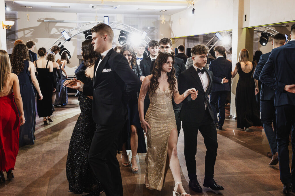 Studniówka rozpoczęła się pięknym polonezem. Tańczące pary prezentowały się na parkiecie wyjątkowo.