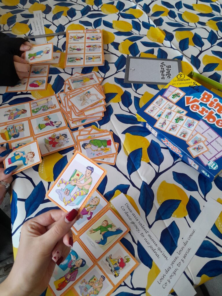 Na zdjęciach prezentujemy również kilka gier w języku francuskim oraz poczęstunek, a wiadomo, że jeżeli chodzi o kuchnię francuską, to nie może zabraknąć croissantów.