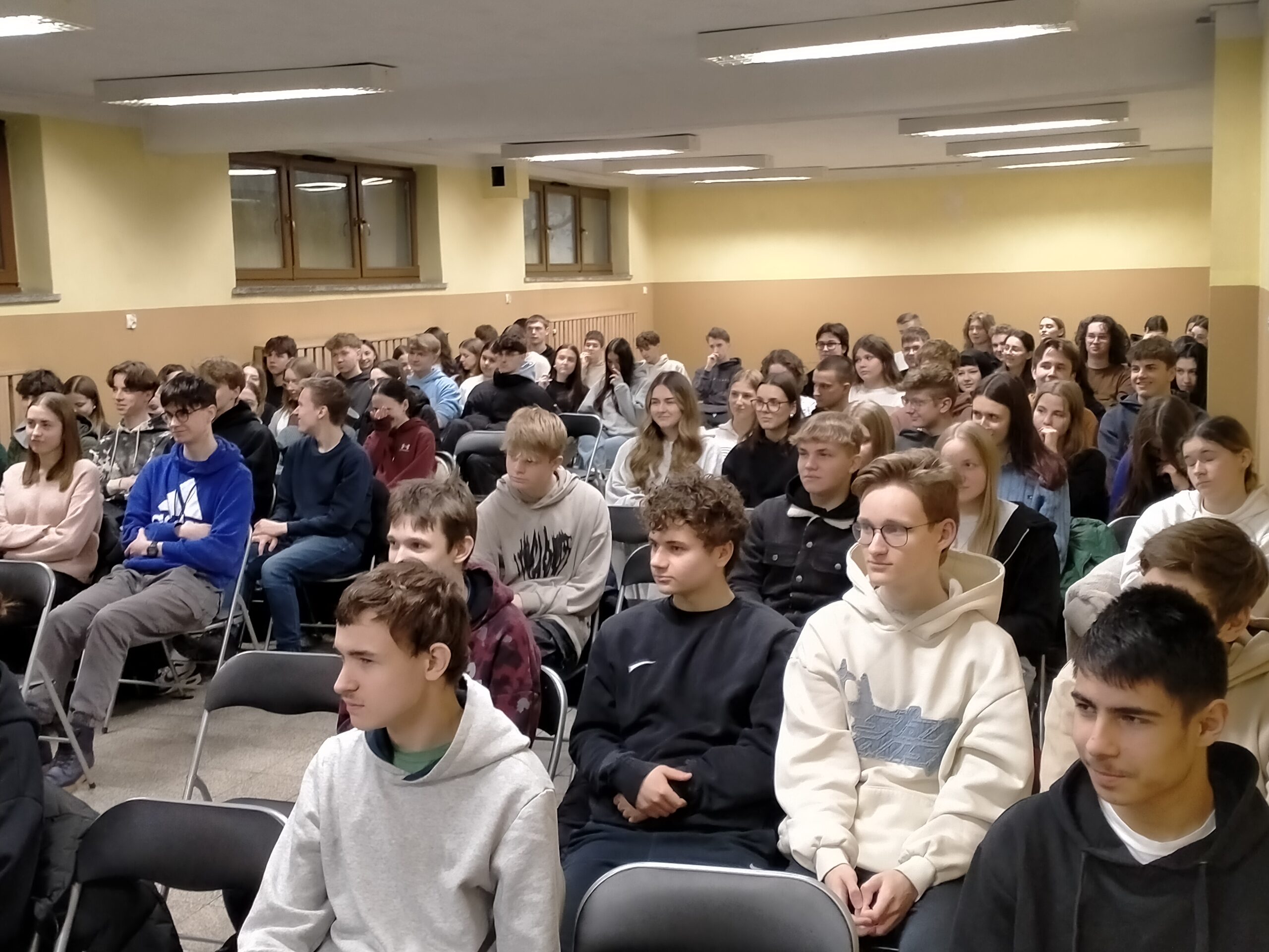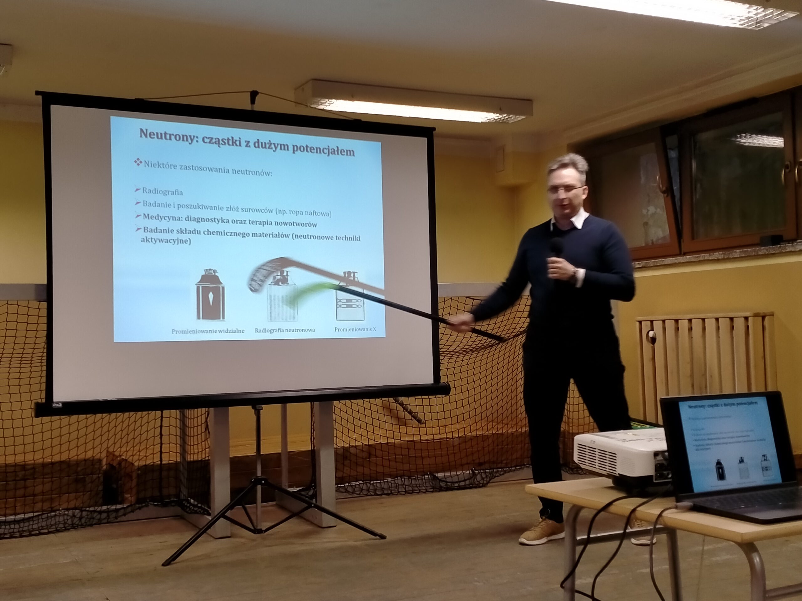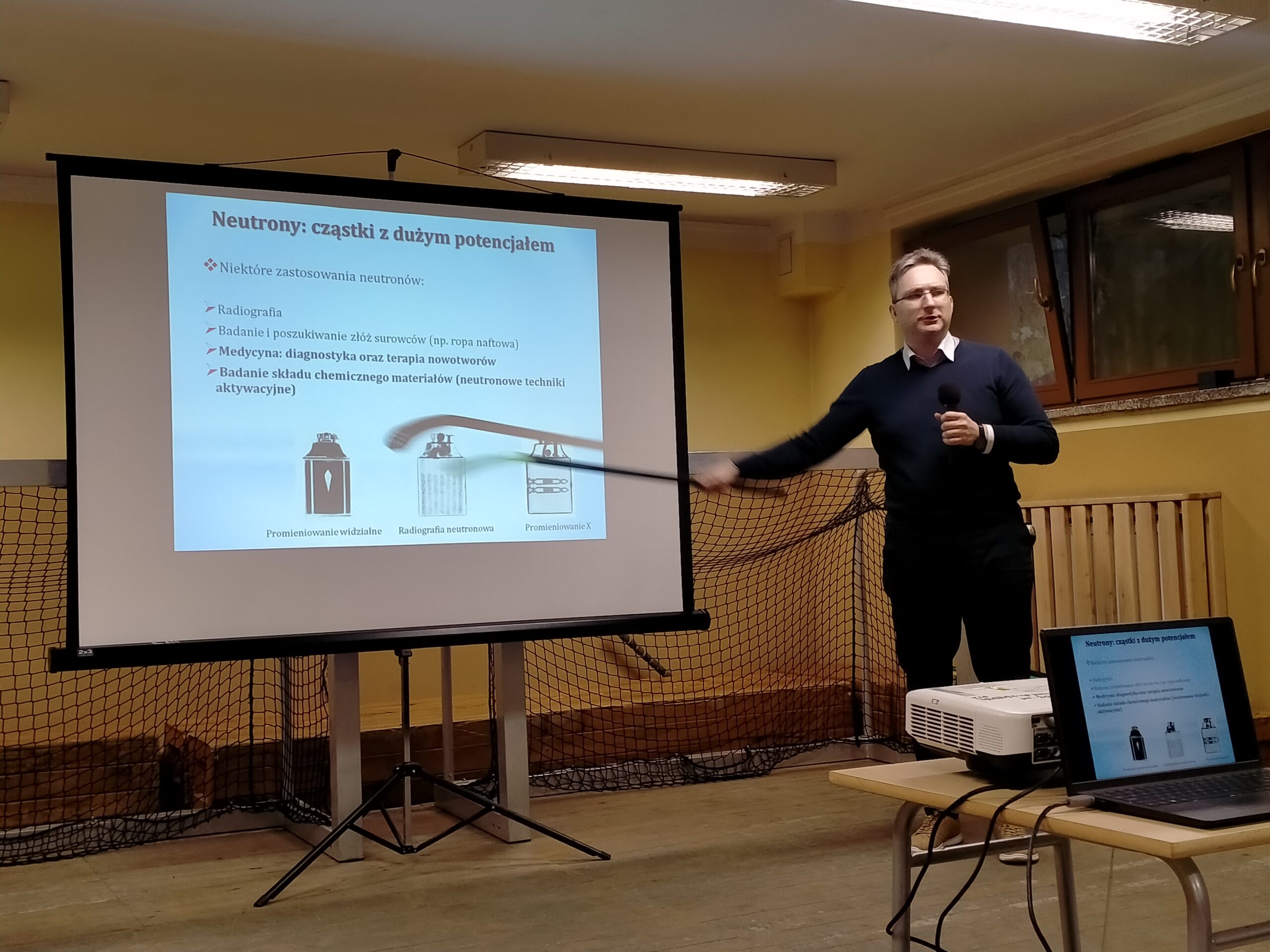 Tematem spotkania była „Fizyka jądrowa ratuje życie: o zastosowaniu neutronów w wykrywaniu materiałów niebezpiecznych i terapii nowotworów”. Wykład odbył się w auli naszego liceum i zgromadził liczne grono uczniów zainteresowanych naukami ścisłymi, technologią oraz współczesnymi zastosowaniami fizyki w życiu codziennym.