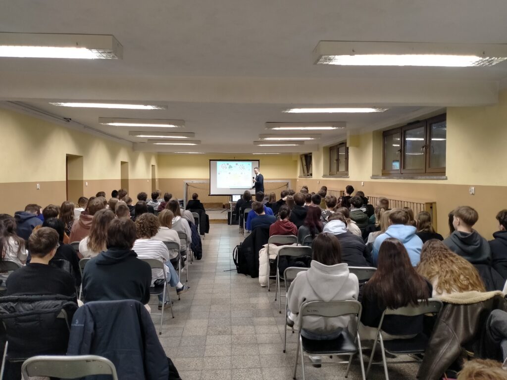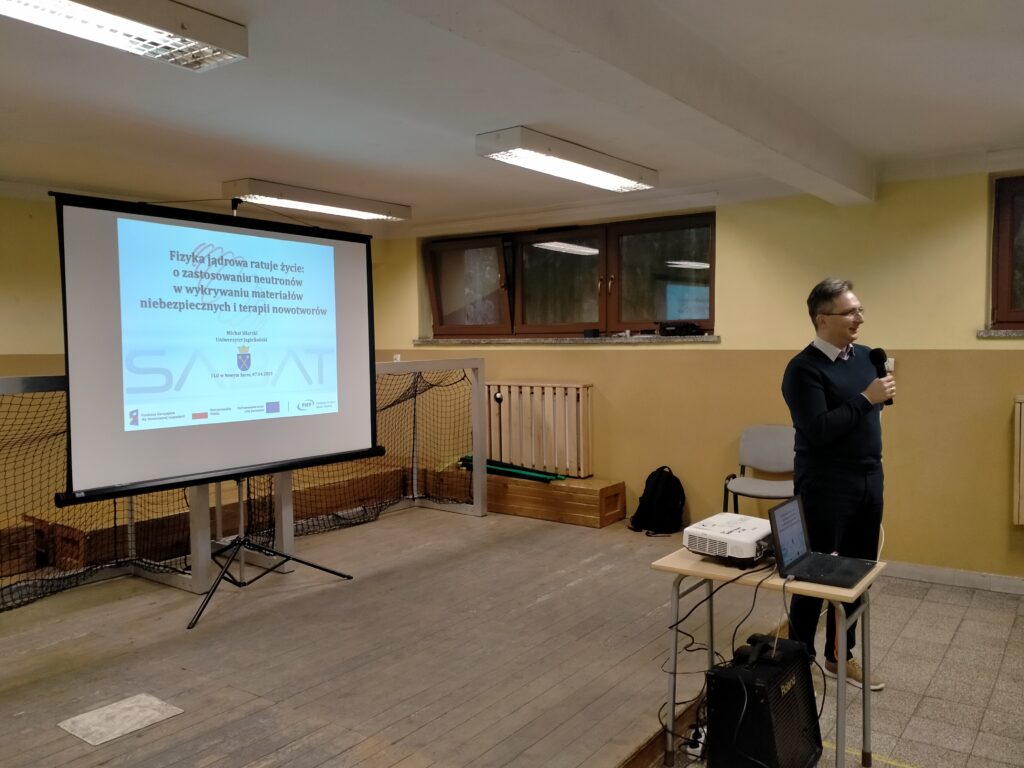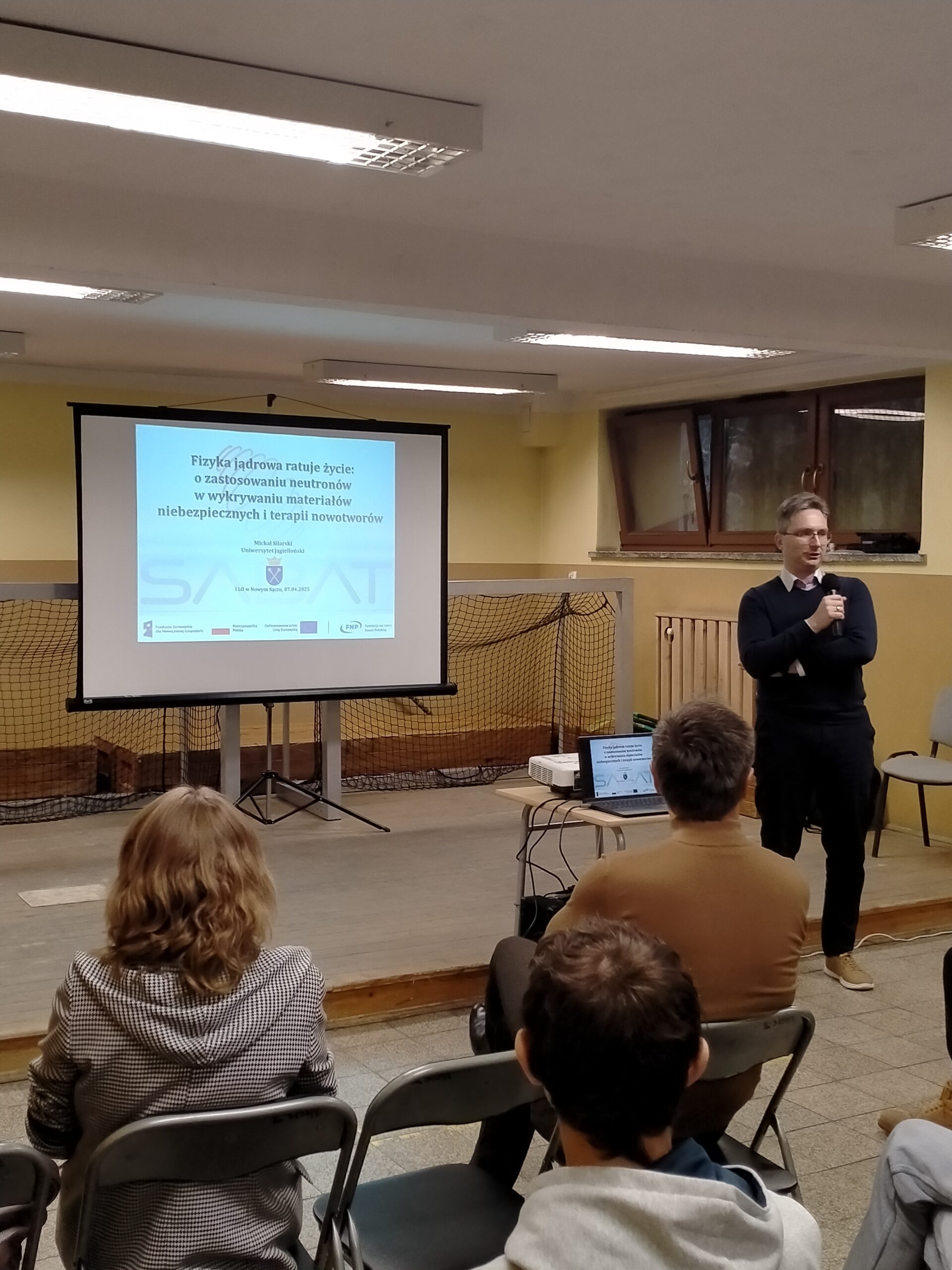 Tematem spotkania była „Fizyka jądrowa ratuje życie: o zastosowaniu neutronów w wykrywaniu materiałów niebezpiecznych i terapii nowotworów”. Wykład odbył się w auli naszego liceum i zgromadził liczne grono uczniów zainteresowanych naukami ścisłymi, technologią oraz współczesnymi zastosowaniami fizyki w życiu codziennym.