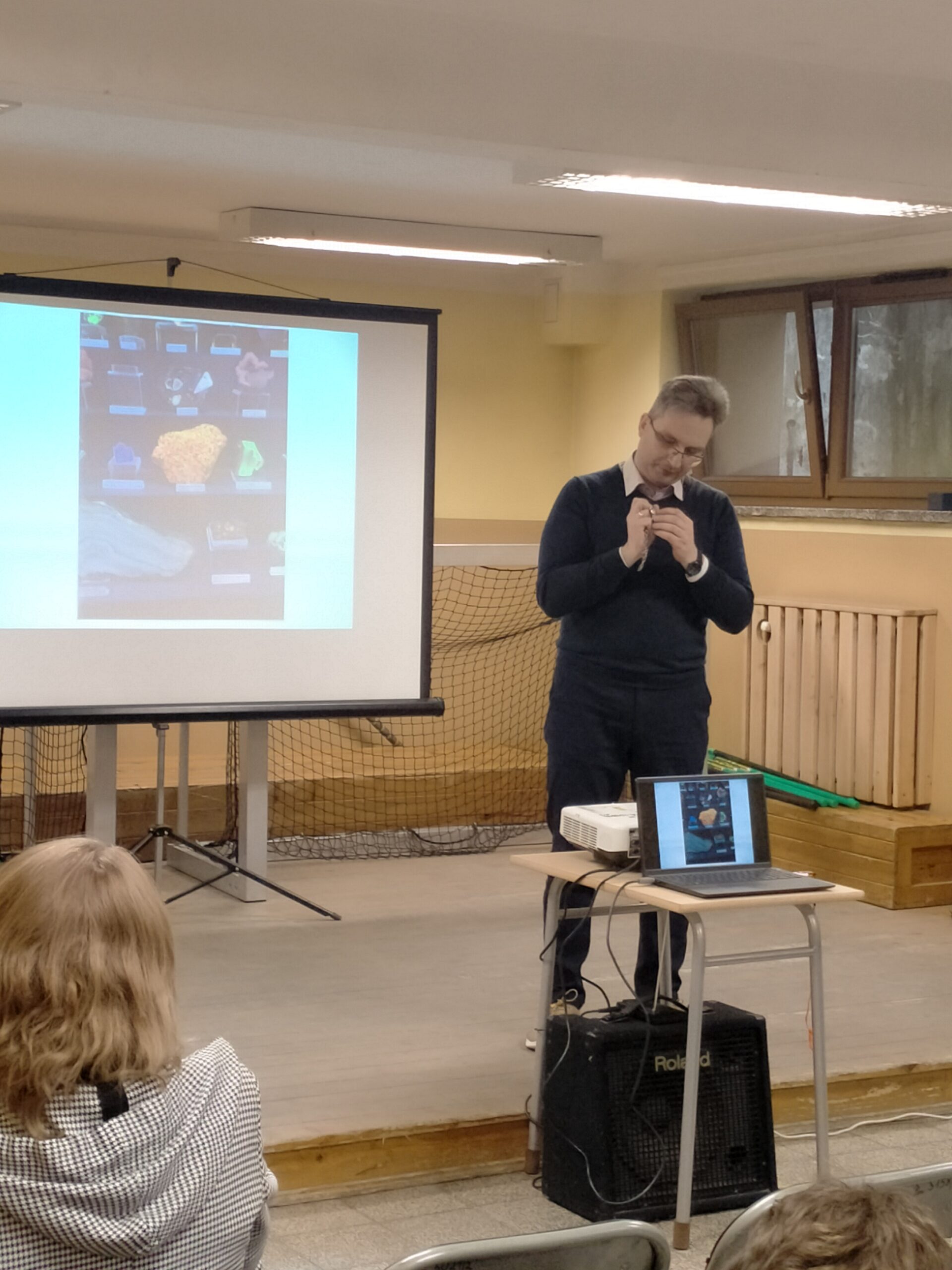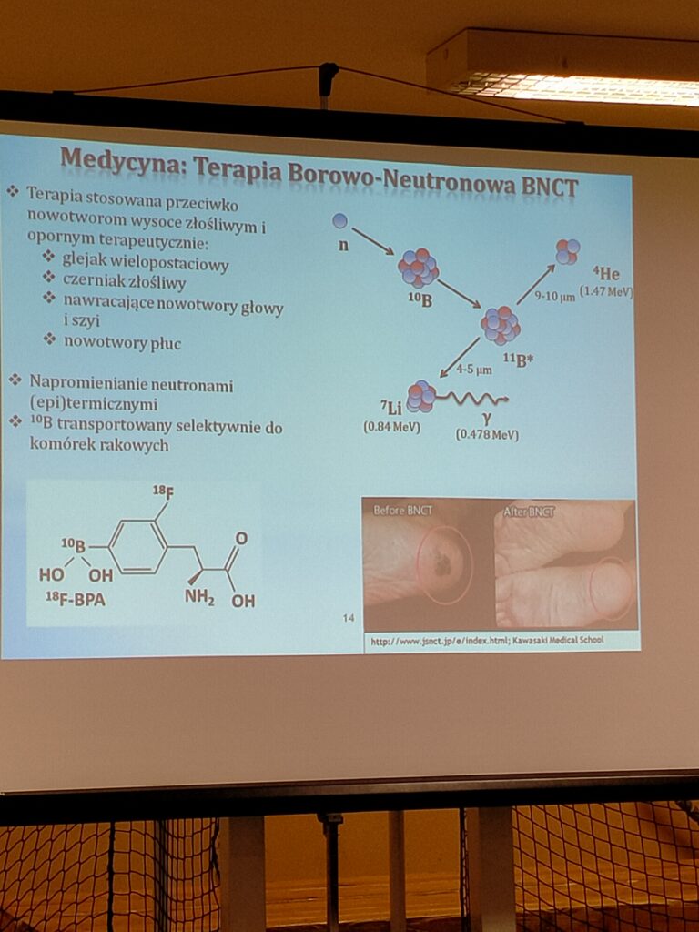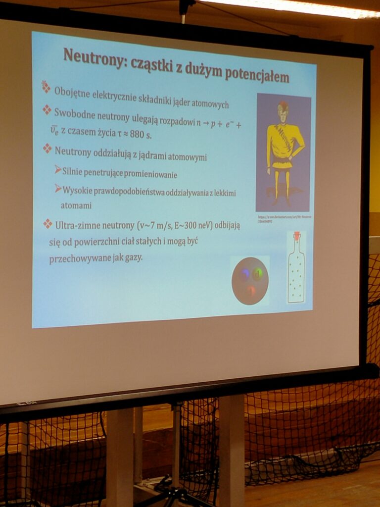 Dr Silarski w przystępny i inspirujący sposób przybliżył zagadnienia związane z fizyką jądrową, skupiając się na wykorzystaniu neutronów – zarówno w kontekście bezpieczeństwa publicznego (np. wykrywanie materiałów niebezpiecznych), jak i w nowoczesnych terapiach onkologicznych, takich jak neutronowa terapia borowa.
