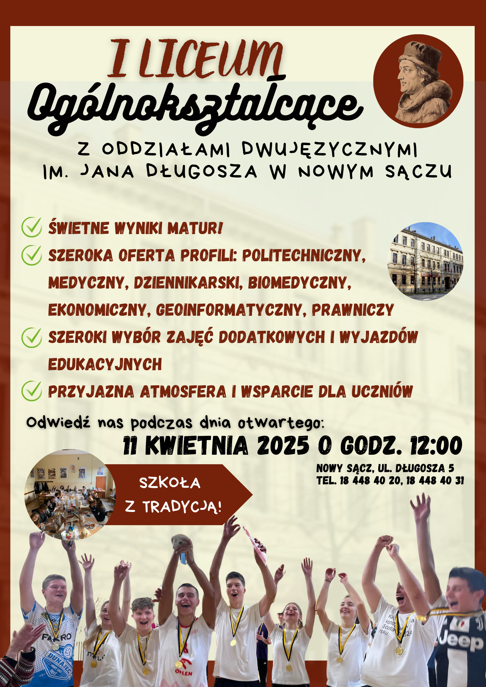 Serdecznie zapraszamy na DZIEŃ OTWARTY w I LO w dniu 11 KWIETNIA 2025r. (PIĄTEK) w godz. 12.00 – 15.00.