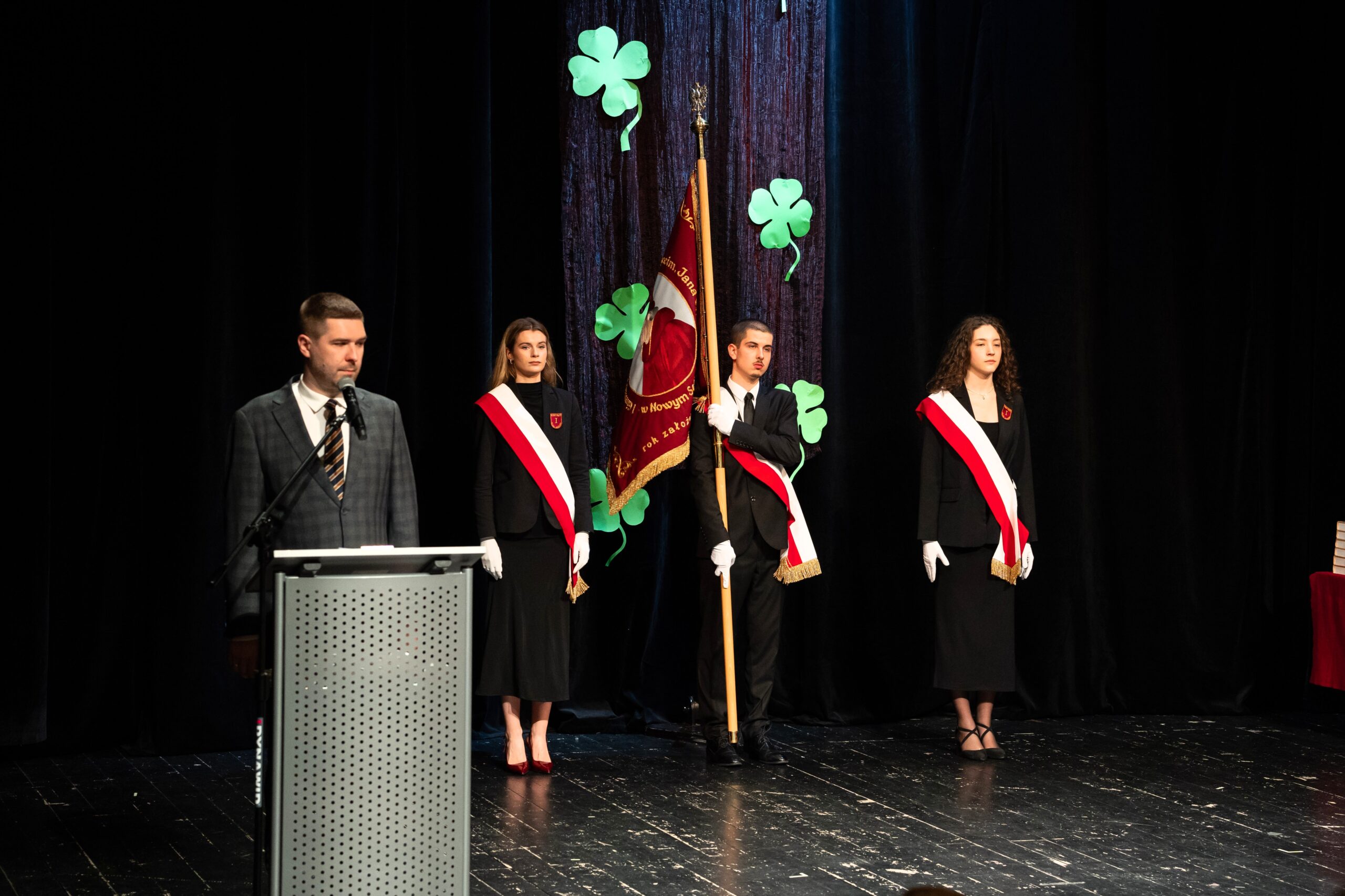 Tomasz Czyżycki, w imieniu Absolwentów, podziękował Dyrekcji, Wychowawcom i Nauczycielom za ich pracę, przekazywaną wiedzę, serdeczność i codzienne wsparcie. Dziękował również Pracownikom Administracji za codzienną troskę i życzliwość oraz Rodzicom za trud wychowania i zrozumienie. Koleżankom i Kolegom życzył połamania piór na maturze oraz szczęścia i powodzenia w życiu.