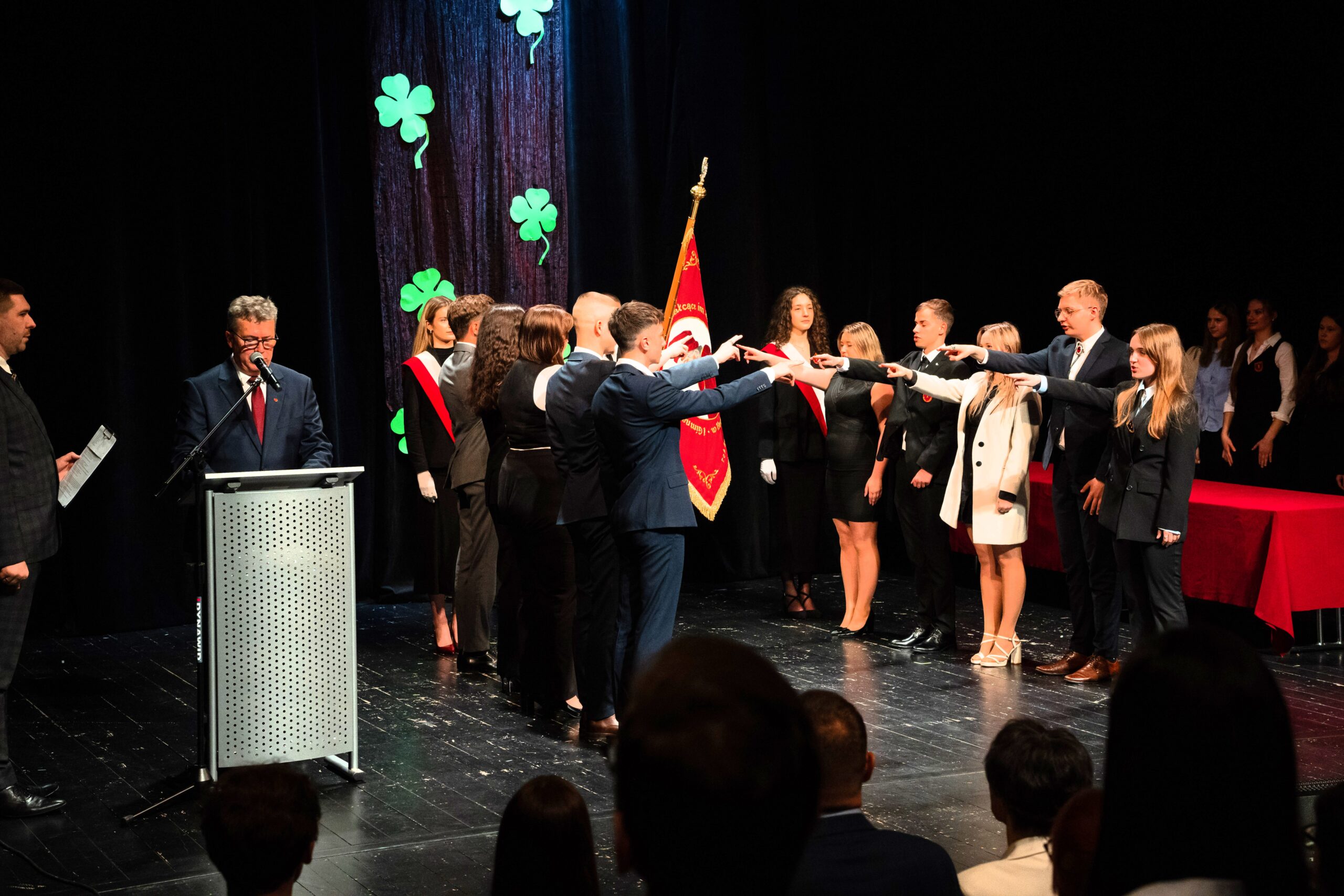 Michał Kubas, Mikołaj Turek, Krzysztof Zygmunt, Arkadiusz Żelazko, Martyna Stawiarska, Weronika Janeczek, Aleksandra Turska, Martyna Sus, Justyna Janczak, Bartłomiej Roman, Krzysztof Smoleń, Szymon Sobczyk, Tomasz Czyżycki, Zofia Siedlarz, Katarzyna Górowska, Cecylia Żelasko, Natalia Knieć, Gabriela Gargula, Paulina Basiaga, Karol Radzik, Witold Bodziony, Anna Kędzierska, Brygida Jędrzejek, Marlena Domek, Klaudia Pierzga oraz reprezentanci Pocztu Sztandarowego w składzie: chorąży Michał Piszczek oraz asysta w składzie: Maria Mikołajczyk, Zuzanna Szczygieł.