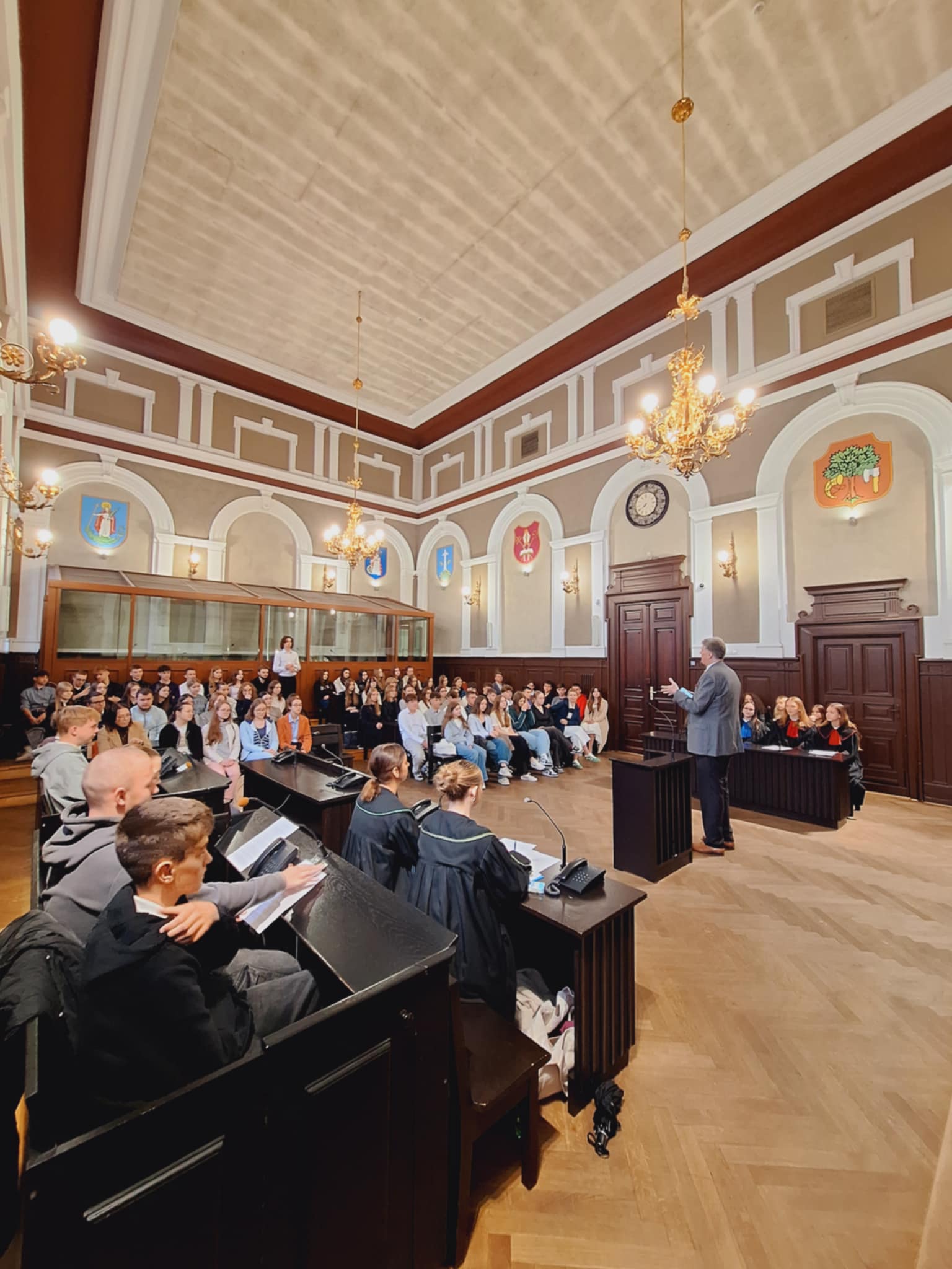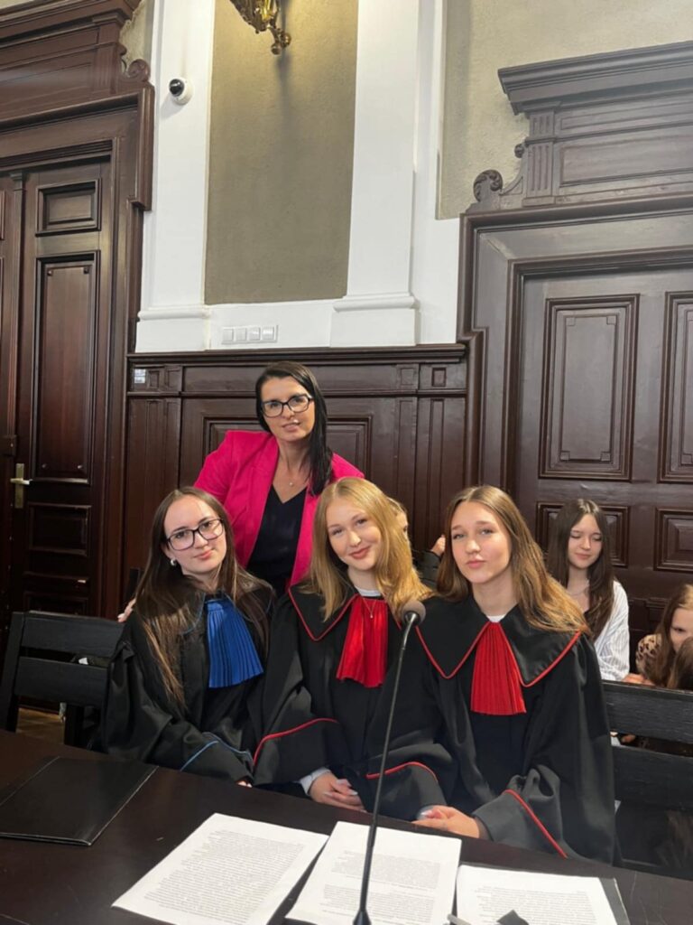 Młodzież wzięła udział w symulacji rozprawy sprawy karnej na kanwie rzeczywistego kazusu. Jako sędziowie wystąpili: Martyna Bubula, Paweł Ratyński (przewodniczący) oraz Martyna Pajor. W rolę prokuratorek wcieliły się: Kinga Mróz i Justyna Sromek. Poszkodowanych reprezentowała radca prawna Antonina Żelasko.