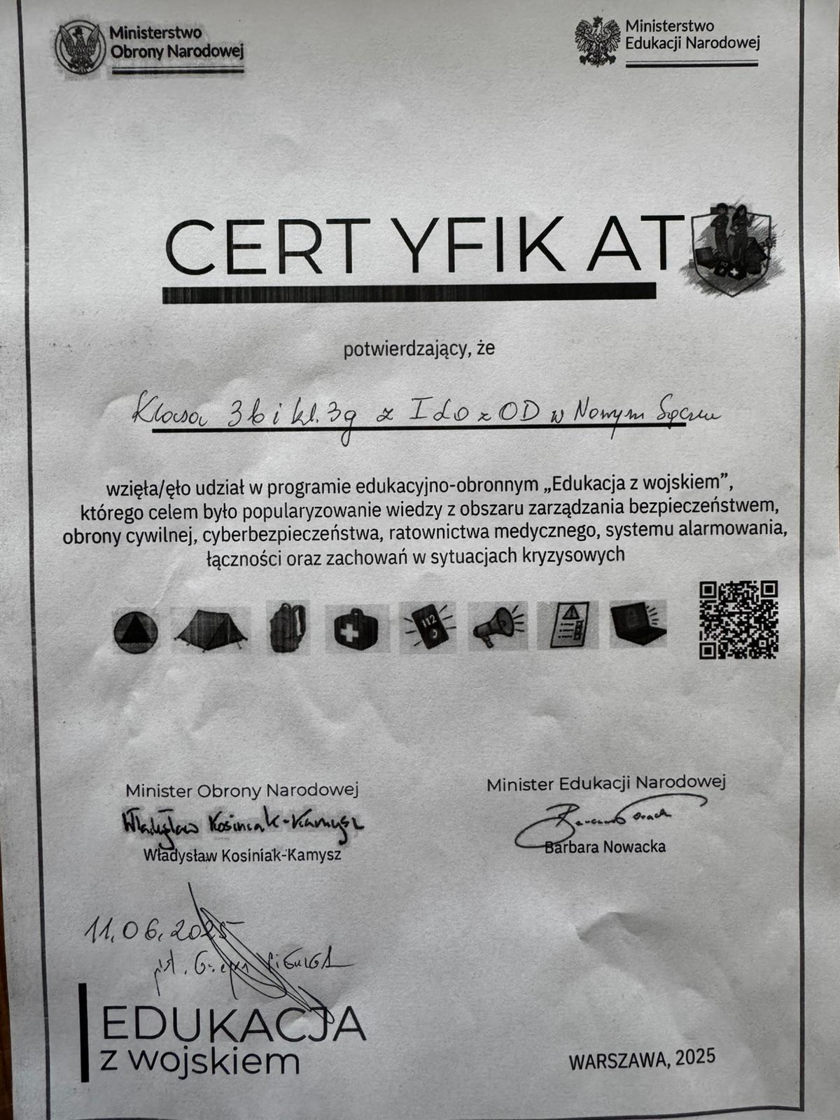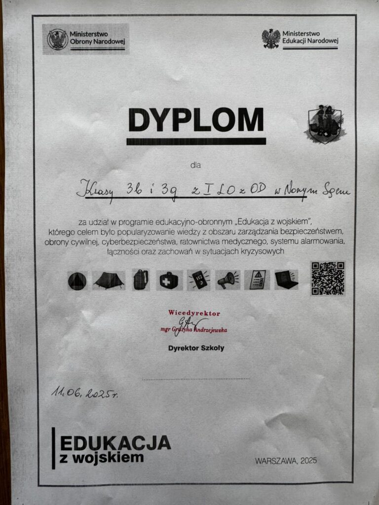 Klasy 3b i kl. 3g z I LO z OD w Nowym Sączu wzięły udział w programie edukacyjno-obronnym „Edukacja z wojskiem”, którego celem było popularyzowanie wiedzy z obszaru zarządzania bezpieczeństwem, obrony cywilnej, cyberbezpieczeństwa, ratownictwa medycznego, systemu alarmowania, łączności oraz zachowań w sytuacjach kryzysowych.