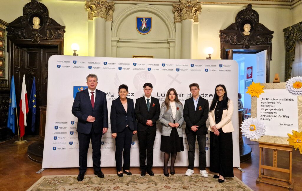 W dniu 10 czerwca 2025 r. w nowosądeckim ratuszu władze Nowego Sącza zorganizowały kolejną edycję „Gali uczniów szczególnie uzdolnionych”. Naszej szkole przyznano wyróżnienia za: laureata XVIII Ogólnopolskiej Olimpiady Przedmiotowej im. mjr. Marka Gajewskiego „Losy żołnierza i dzieje oręża polskiego. Od Traktatu Ryskiego do Żołnierzy Niezłomnych 1921-1956” (Szymon Kasprzyk) i trzech finalistów tej olimpiady (Karolina Popiela, Marek Gądek, Krzysztof Fiedor), finalistę 71 Olimpiady Chemicznej (Mateusz Mółka), finalistę 54 Olimpiady Biologicznej (Kacper Pałka) i finalistkę Olimpiady Wiedzy o Afryce (Oliwia Gruca). Nasi reprezentanci otrzymali nagrody wręczone przez Panią Bożenę Borkowską – Zastępcę Prezydenta Miasta Nowego Sącza.