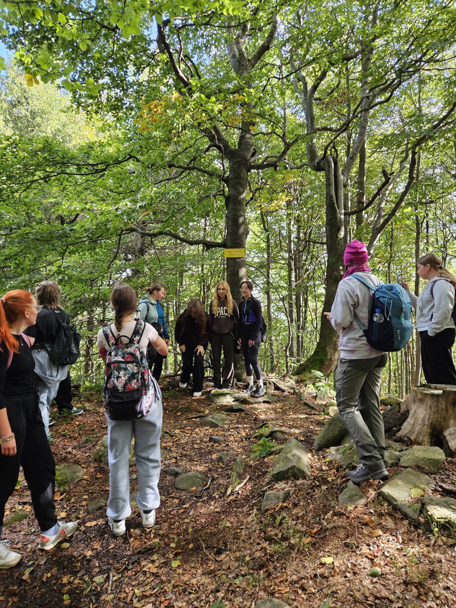 Grupę na szlaku wspierał emerytowany prof. I LO, Aleksander Żarnowski – przewodnik górski beskidzki.