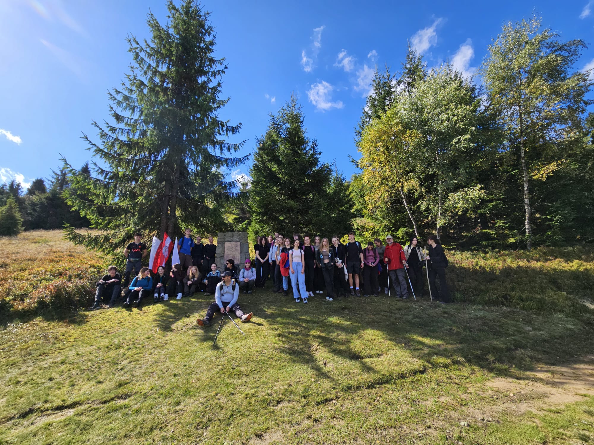 18 września br. w sąsiedztwie schroniska PTTK na Hali Łabowskiej, na wysokości powyżej 1000 m n.p.m. miał miejsce coroczny Zlot organizowany przez Oddział PTTK „Beskid” w Nowym Sączu. Licznie zgromadzona młodzież przybyła ze szkół z Nowego Sącza, Marcinkowic oraz Łomnicy-Zdroju, aby upamiętnić walkę o niepodległą Polskę 9 kompanii III batalionu 1 Pułku Strzelców Podhalańskich AK, czyli partyzantów od „Tatara”. Uczniowie z naszej szkoły zrzeszeni w SKKT PTTK „WEKTOR” pod opieką nauczycieli: Aliny Fałowskiej, Jadwigi Puchały i Sebastiana Jermakowicza (przodownika turystyki górskiej) od samego rana wędrowali szlakami turystycznymi Beskidu Sądeckiego, aby dotrzeć przed południem na Halę Łabowską.