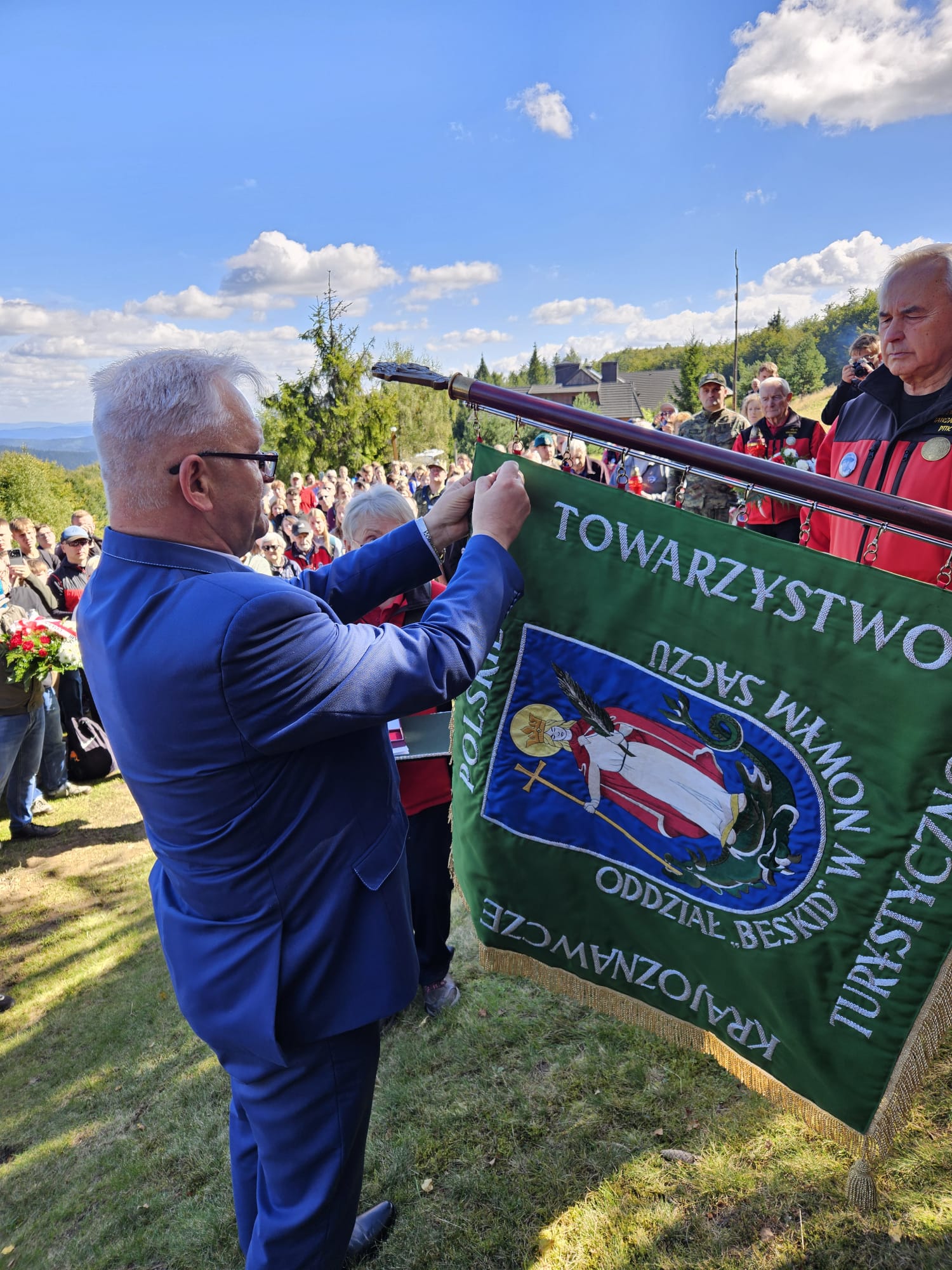 Przy kamiennym pomniku z tablicą poświęconą 9 kompanii III batalionu 1 PSP AK rozpoczęły się oficjalne uroczystości z licznym udziałem rodzin żołnierzy Armii Krajowej (w tym m.in. obydwóch synów Juliana Zubka, żony i siostrzenicy Romana Stramki, czy syna Wiktora Mikusińskiego), przedstawicieli władz samorządowych z miasta Nowego Sącza i Piwnicznej-Zdroju oraz gminy Łabowa, funkcjonariuszami Karpackiego Oddziału Straży Granicznej, delegacjami Popradzkiego Parku Krajobrazowego oraz Muzeum AK w Krakowie. Po oficjalnym przywitaniu gości i odśpiewaniu hymnu państwowego, przedstawiciel Szefa Urzędu do Spraw Kombatantów i Osób Represjonowanych płk. rez. dr. Ryszard Najczuk, na podstawie decyzji Szefa Urzędu, uhonorował sztandar Oddziału PTTK „Beskid” medalem „Pro Patria”. Następnie nauczyciel I LO mgr Piotr Rychlewski, opiekun SKKT PTTK „WEKTOR” i przewodnik górski beskidzki zaprezentował krótki rys historyczny poświęcony partyzantom od „Tatara”.