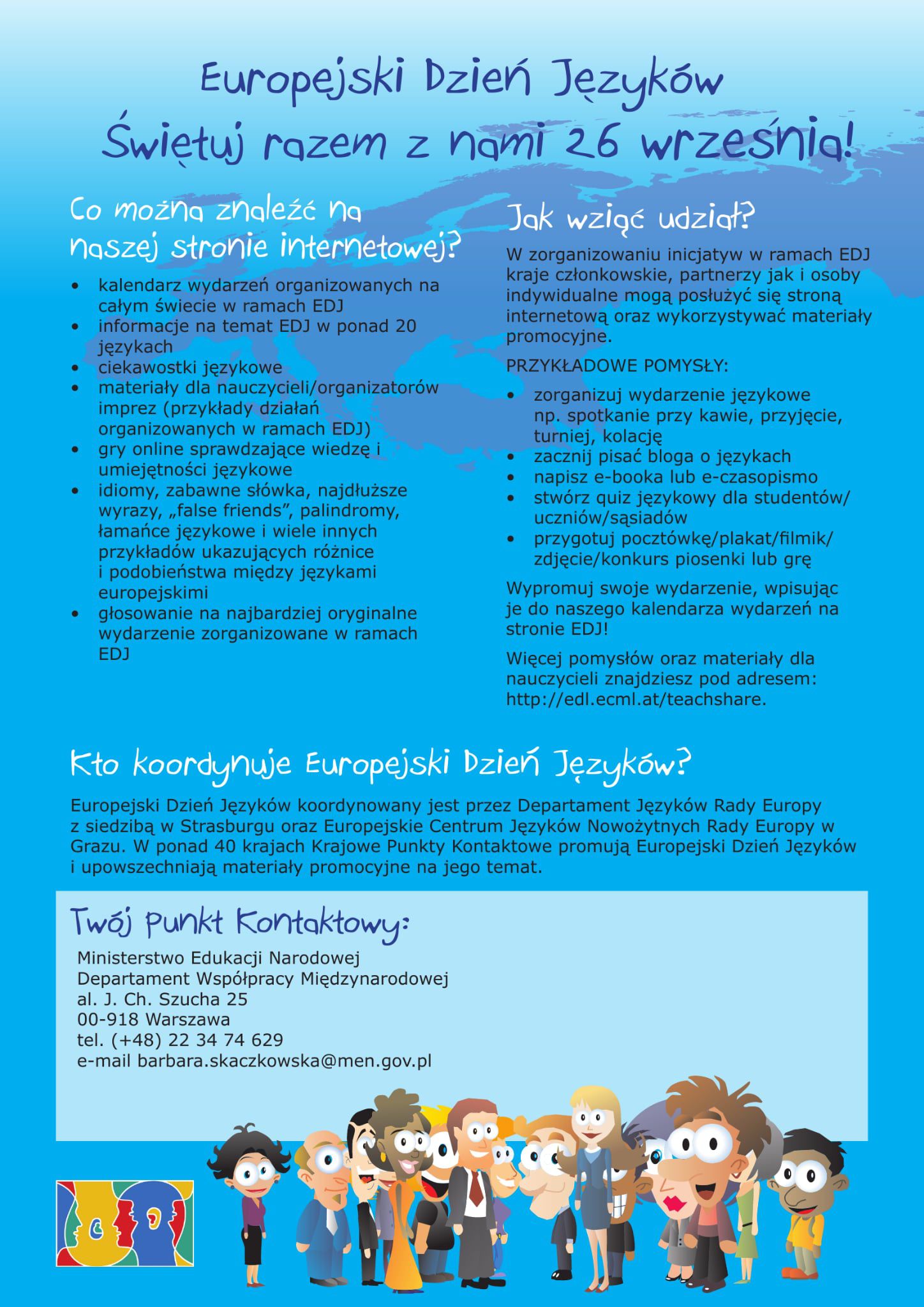 Europejski Dzień Języków, obchodzony corocznie 26 września, został ustanowiony z inicjatywy Rady Europy, aby podkreślić znaczenie nauki języków obcych oraz promować bogactwo i różnorodność językową Europy. Święto to przypomina, jak ważne jest rozwijanie kompetencji językowych, które sprzyjają wzajemnemu zrozumieniu, tolerancji i otwartości na inne kultury.