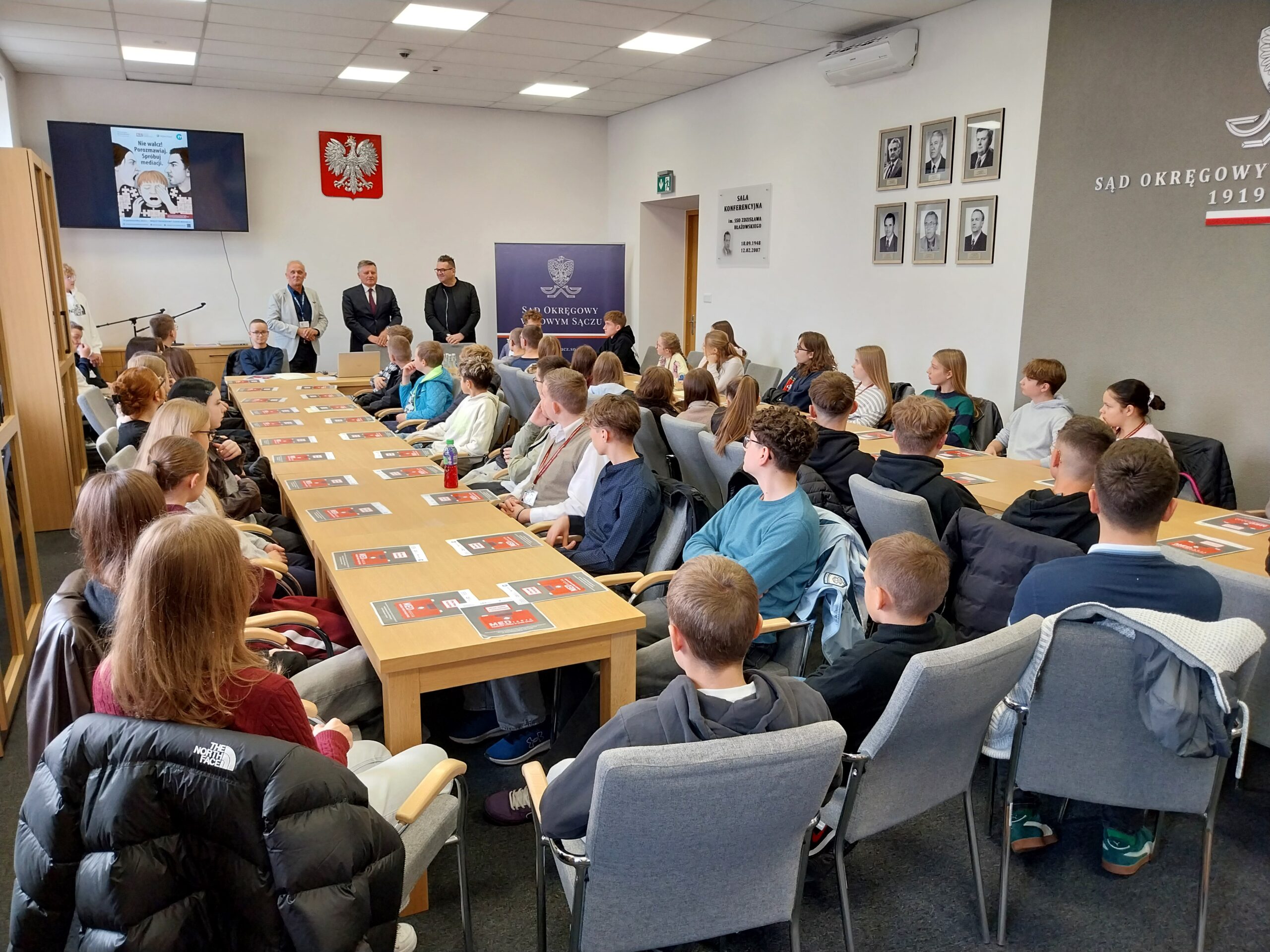Uczniowie mieli okazję porozmawiać z sędziami, zawodowymi mediatorami oraz innymi pracownikami sądu na temat tej metody polubownego rozwiązywania sporów.