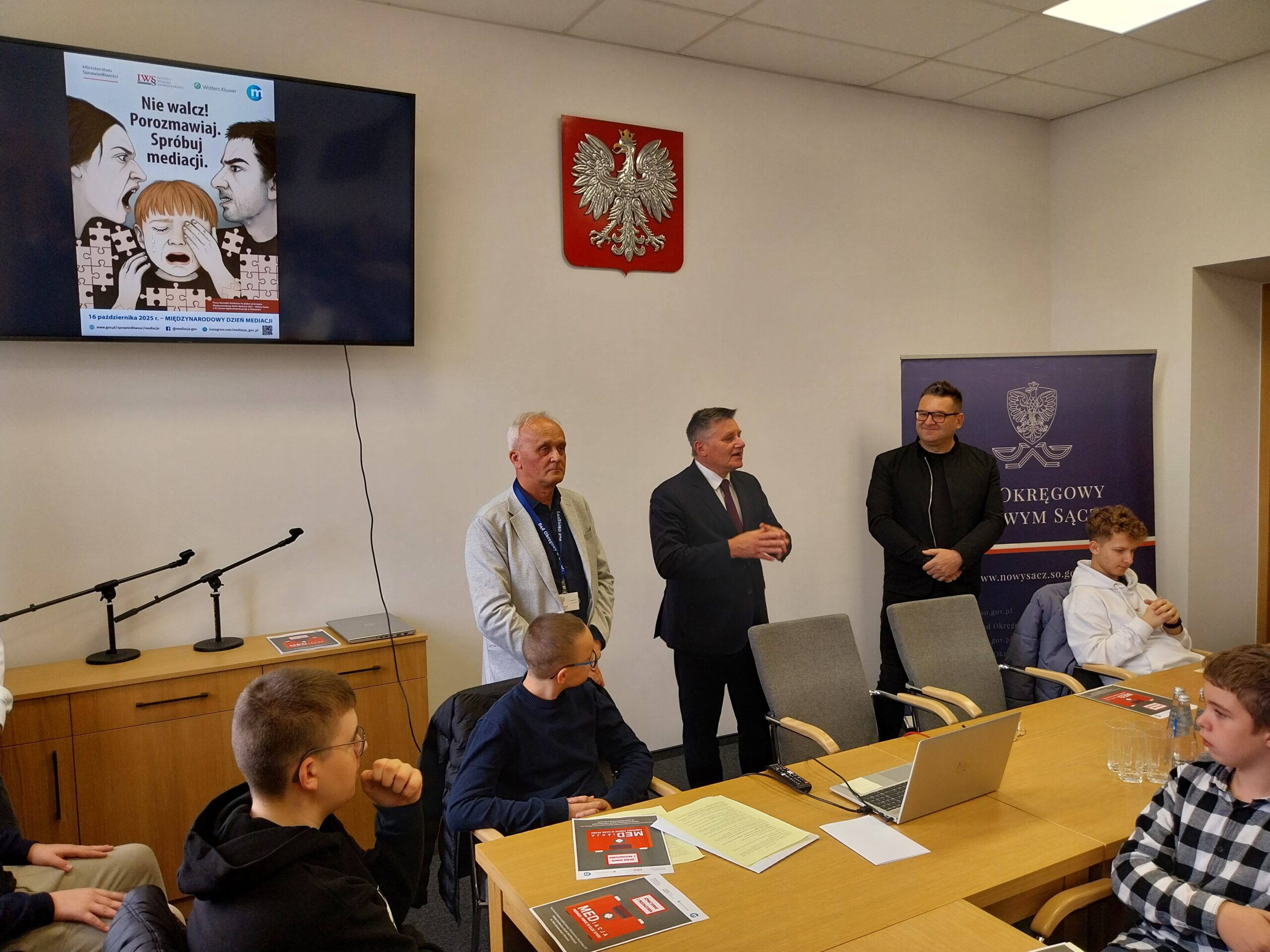 W czwartek, 16 października, z okazji Międzynarodowego Dnia Mediacji, uczniowie klasy 1h (profil prawniczy) pod opieką dra Jakuba Bulzaka, na zaproszenie Prezesa Sądu Okręgowego Mieczysława H. Kamińskiego, brali udział w zajęciach na temat mediacji.